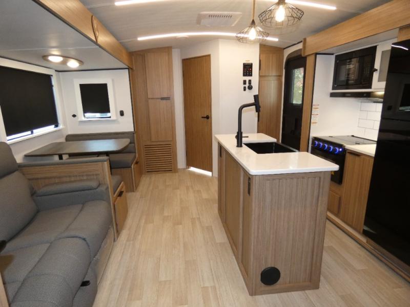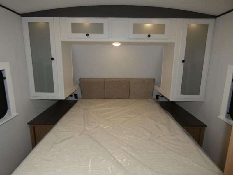 Each one of these Keystone RV Passport travel trailers offer grand style and multi-functional features! They have best-in-class storage for big things like paddle boards and small things like sleeping bags. There's no need for cordless drills and bending over to put the jacks down, simply push a button and the power stabilizer jacks do the rest. The one piece polypropylene underbelly and extended season camping package help protect your unit's vitals in different weather conditions. Exclusive to Keystone is the Tru-fit slide construction and the Hyper Deck flooring which is more resilient, stronger and lighter than the traditional laminated wood construction, plus it resists water and water damage. Inside, you'll find residential durable Beauflor vinyl flooring, deluxe night shades, bedside outlets/USB ports, and a bath skylight for more natural light and additional head room.