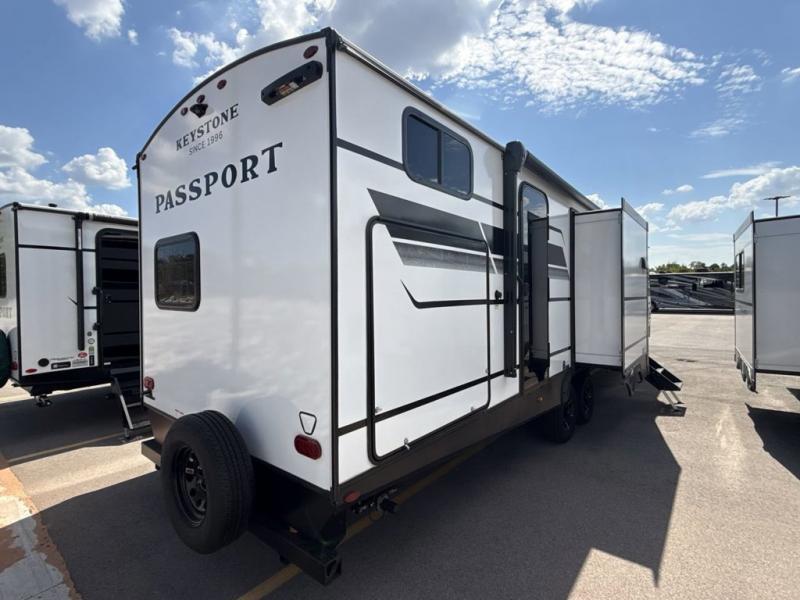 Each one of these Keystone RV Passport travel trailers offer grand style and multi-functional features! They have best-in-class storage for big things like paddle boards and small things like sleeping bags. There's no need for cordless drills and bending over to put the jacks down, simply push a button and the power stabilizer jacks do the rest. The one piece polypropylene underbelly and extended season camping package help protect your unit's vitals in different weather conditions. Exclusive to Keystone is the Tru-fit slide construction and the Hyper Deck flooring which is more resilient, stronger and lighter than the traditional laminated wood construction, plus it resists water and water damage. Inside, you'll find residential durable Beauflor vinyl flooring, deluxe night shades, bedside outlets/USB ports, and a bath skylight for more natural light and additional head room.