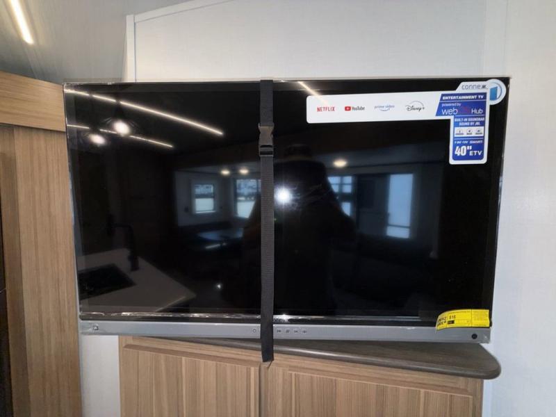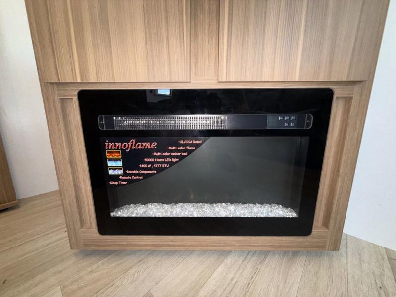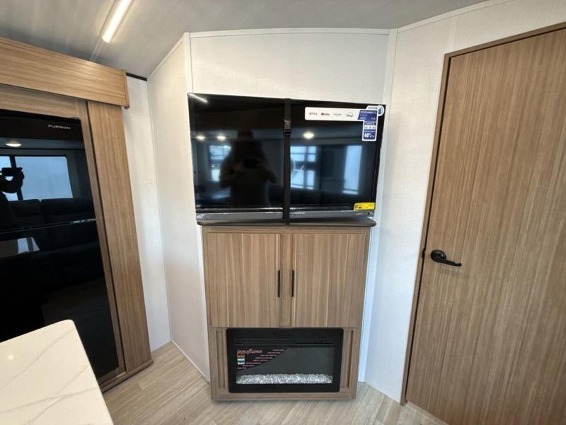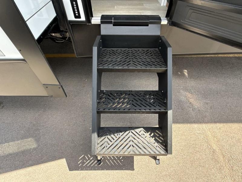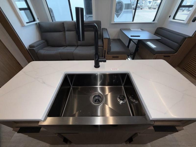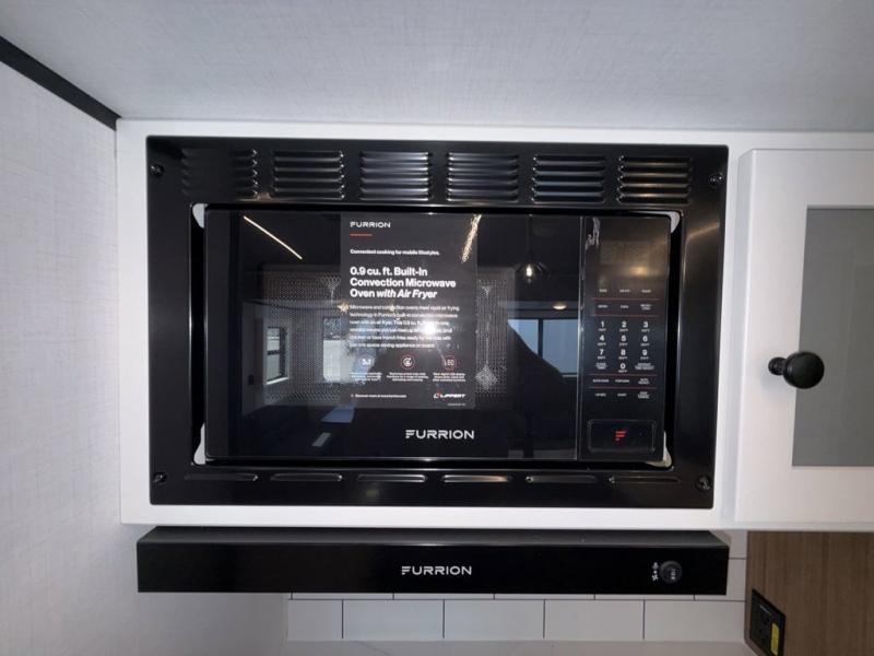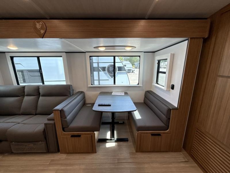 You won't believe all that this travel trailer has to offer! Starting with the rear private bunkhouse which has a 28" x 74" flip-up bunk above a tri-fold sofa, a 51" x 74" bunk above an entertainment center, and even a half bathroom which has one of the dual entry doors to the unit. The front private bedroom has a queen bed to lay your head on at night with wardrobes on either side. As you exit the bedroom, you will enter the walk-through bathroom. Now that you're ready for the day, you can head to the fully equipped kitchen complete with a kitchen island to whip up some delicious cinnamon rolls that can be enjoyed at the Do-More dinette table. You even have an outside kitchen with a griddle, sink, and mini-fridge!