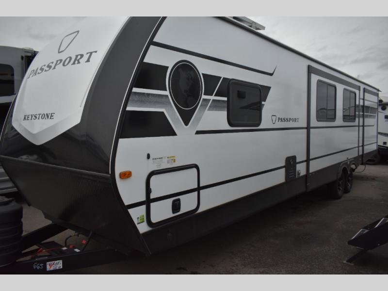 Each one of these Keystone RV Passport travel trailers offer grand style and multi-functional features! They have best-in-class storage for big things like paddle boards and small things like sleeping bags. There's no need for cordless drills and bending over to put the jacks down, simply push a button and the power stabilizer jacks do the rest. The one piece polypropylene underbelly and extended season camping package help protect your unit's vitals in different weather conditions. Exclusive to Keystone is the Tru-fit slide construction and the Hyper Deck flooring which is more resilient, stronger and lighter than the traditional laminated wood construction, plus it resists water and water damage. Inside, you'll find residential durable Beauflor vinyl flooring, deluxe night shades, bedside outlets/USB ports, and a bath skylight for more natural light and additional head room.