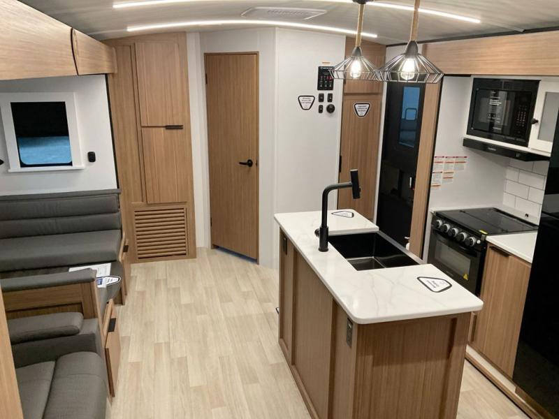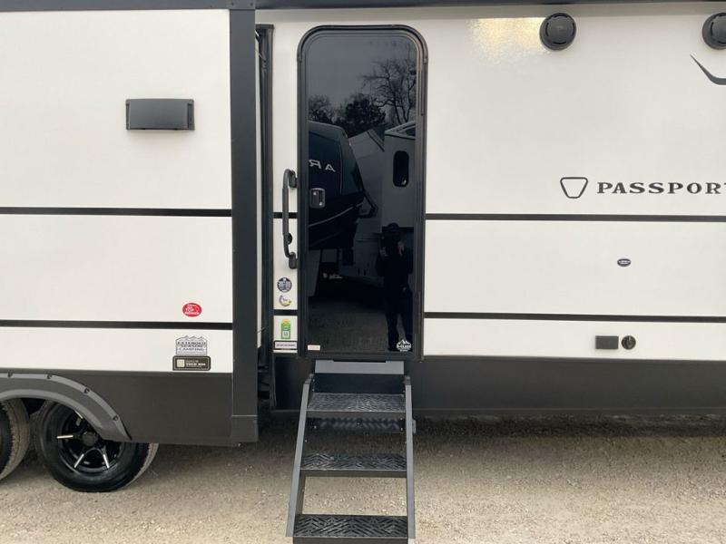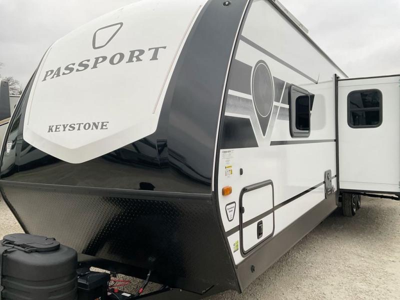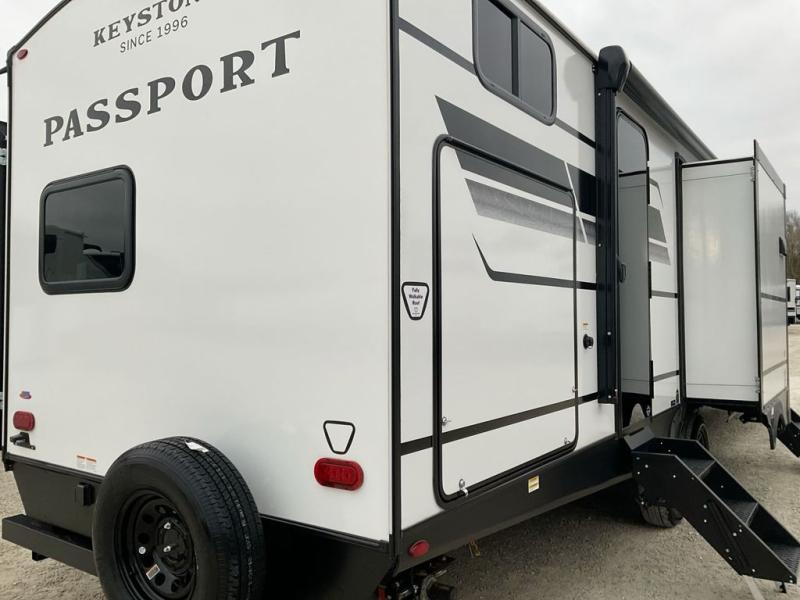 Each one of these Keystone RV Passport travel trailers offer grand style and multi-functional features! They have best-in-class storage for big things like paddle boards and small things like sleeping bags. There's no need for cordless drills and bending over to put the jacks down, simply push a button and the power stabilizer jacks do the rest. The heated and enclosed underbelly helps protect your unit's vitals in different weather conditions. Exclusive to Keystone is the Beauflor® vinyl flooring which is more resilient, stronger and lighter than the traditional laminated wood construction, plus it resists water and water damage. Inside, you'll find residential durable Cedar frost interior decor, LED lights throughout, decorative bedspread, and a skylight for more natural light.