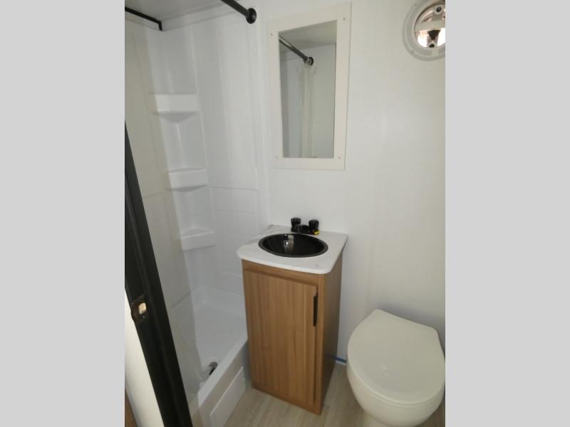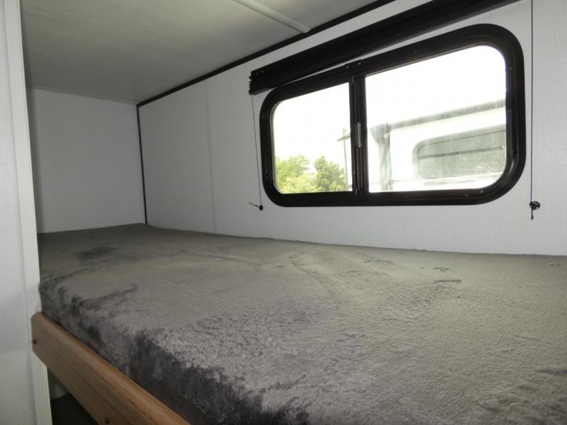 If you're looking for a single axle bunkhouse model, this is the one! The full bath is close by the 28" x 74" bunks for easy nighttime use, and there is also a front queen bed so no one has to sleep on an air mattress. You can make breakfast on the two burner cooktop or in the microwave oven each morning, and the milk can go back in the 12V refrigerator when you're done. A booth dinette provides a place to dine together, or you can sit outdoors under the 11' awning!