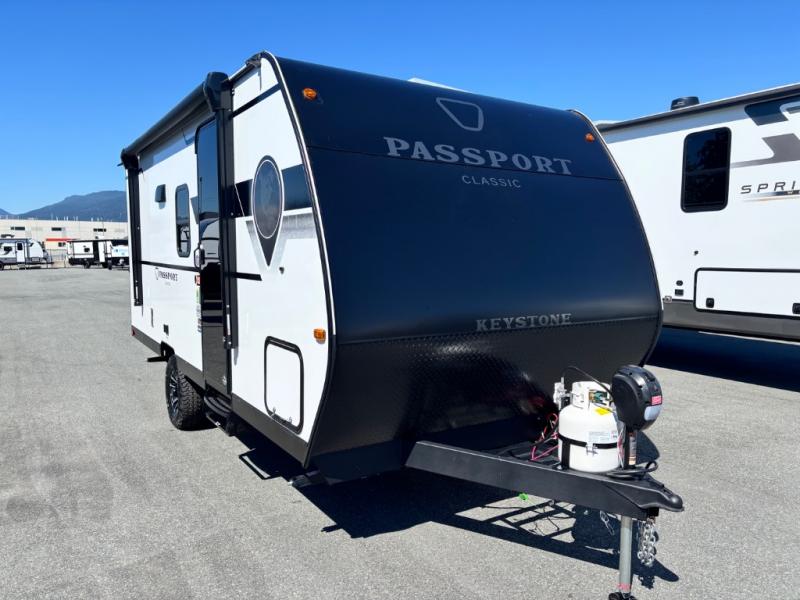 Comfort is found all throughout each one of these Keystone RV Passport Classic travel trailers! They are built with a one-piece polypropylene underbelly to protect your unit's vitals, and a seamless, laminated and gel-coated filon exterior that is sure to turn heads at the campsite. A fully walkable roof makes it easy to access when needed, and the leaf spring straight axles help provide smooth towing. The residential durable Beauflor vinyl flooring throughout and the seamless kitchen countertops will be easy to clean, and you can stay cool on a hot summer day with the A/C unit. Come find the Passport Classic that fits your needs best!