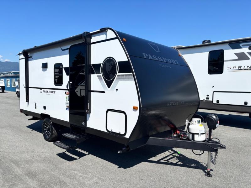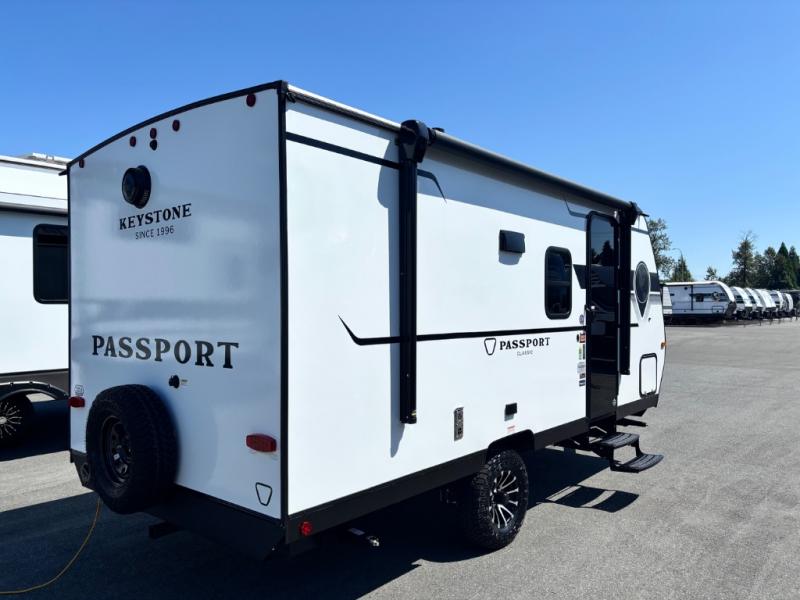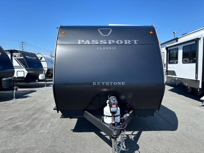 Comfort is found all throughout each one of these Keystone RV Passport Classic travel trailers! They are built with a one-piece polypropylene underbelly to protect your unit's vitals, and a seamless, laminated and gel-coated filon exterior that is sure to turn heads at the campsite. A fully walkable roof makes it easy to access when needed, and the leaf spring straight axles help provide smooth towing. The residential durable Beauflor vinyl flooring throughout and the seamless kitchen countertops will be easy to clean, and you can stay cool on a hot summer day with the A/C unit. Come find the Passport Classic that fits your needs best!