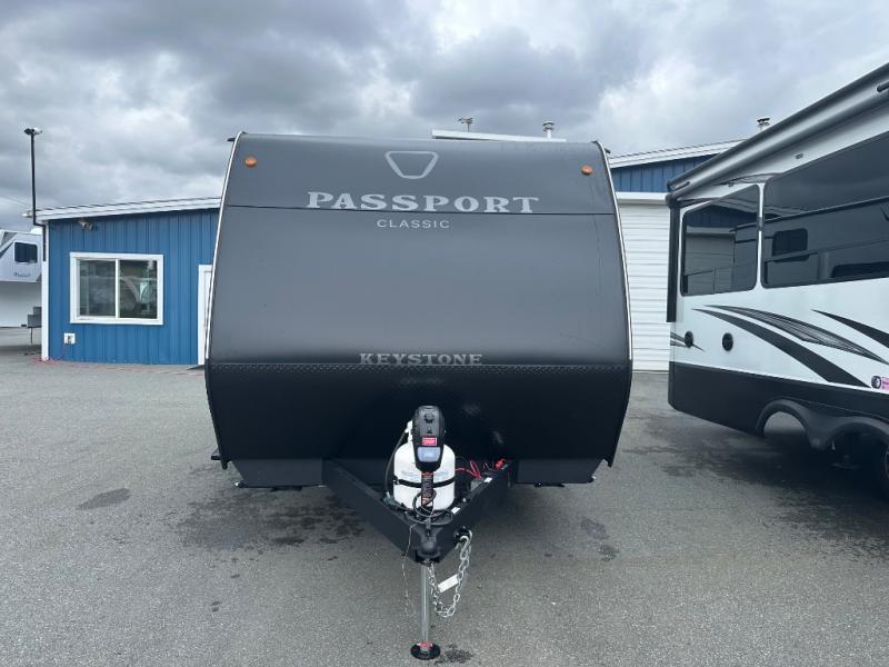 Comfort is found all throughout each one of these Keystone RV Passport Classic travel trailers! They are built with a one-piece polypropylene underbelly to protect your unit's vitals, and a seamless, laminated and gel-coated filon exterior that is sure to turn heads at the campsite. A fully walkable roof makes it easy to access when needed, and the leaf spring straight axles help provide smooth towing. The residential durable Beauflor vinyl flooring throughout and the seamless kitchen countertops will be easy to clean, and you can stay cool on a hot summer day with the A/C unit. Come find the Passport Classic that fits your needs best!