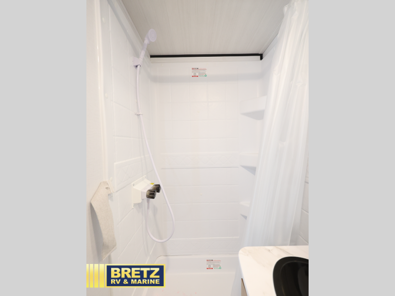 If you're looking for a single axle bunkhouse model, this is the one! The full bath is close by the 28" x 74" bunks for easy nighttime use, and there is also a front queen bed so no one has to sleep on an air mattress. You can make breakfast on the two burner cooktop or in the microwave oven each morning, and the milk can go back in the 12V refrigerator when you're done. A booth dinette provides a place to dine together, or you can sit outdoors under the patio awning!