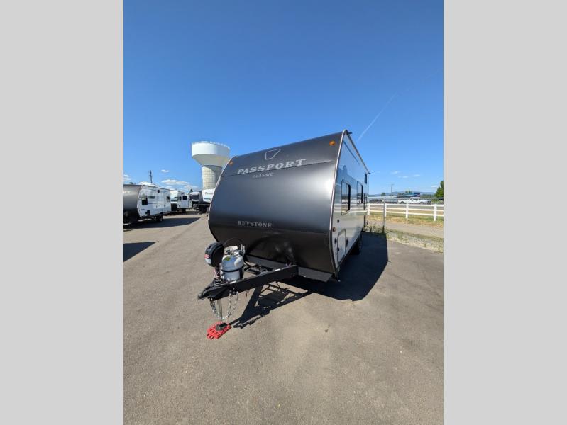 Comfort is found all throughout each one of these Keystone RV Passport Classic travel trailers! They are built with a one-piece polypropylene underbelly to protect your unit's vitals, and a seamless, laminated and gel-coated filon exterior that is sure to turn heads at the campsite. A fully walkable roof makes it easy to access when needed, and the leaf spring straight axles help provide smooth towing. The residential durable Beauflor vinyl flooring throughout and the seamless kitchen countertops will be easy to clean, and you can stay cool on a hot summer day with the A/C unit. Come find the Passport Classic that fits your needs best!