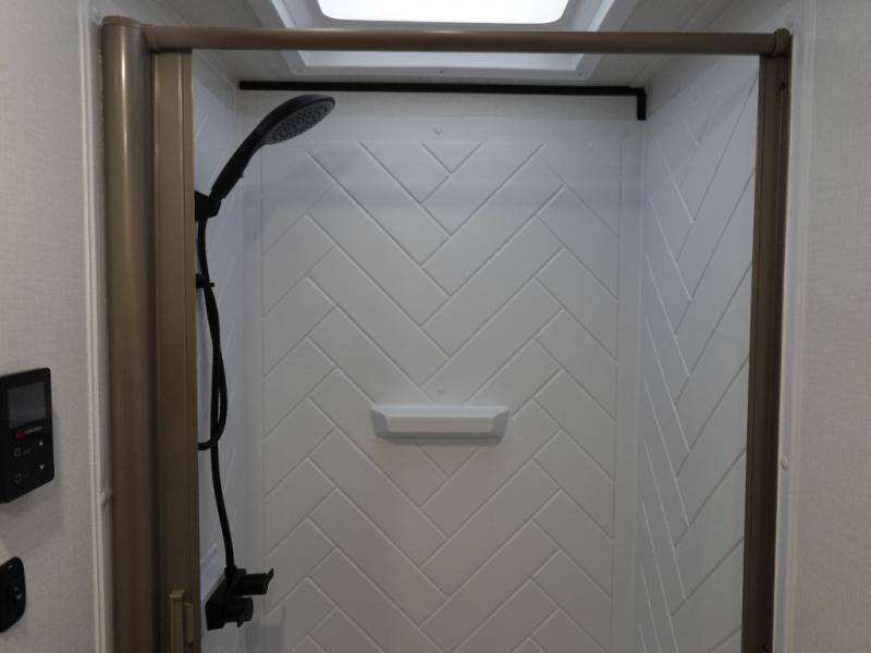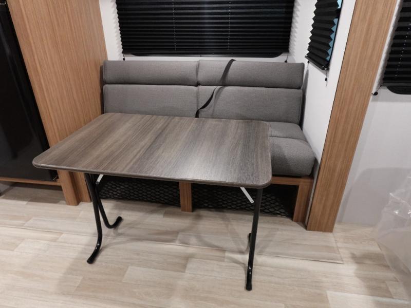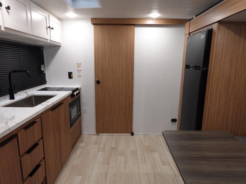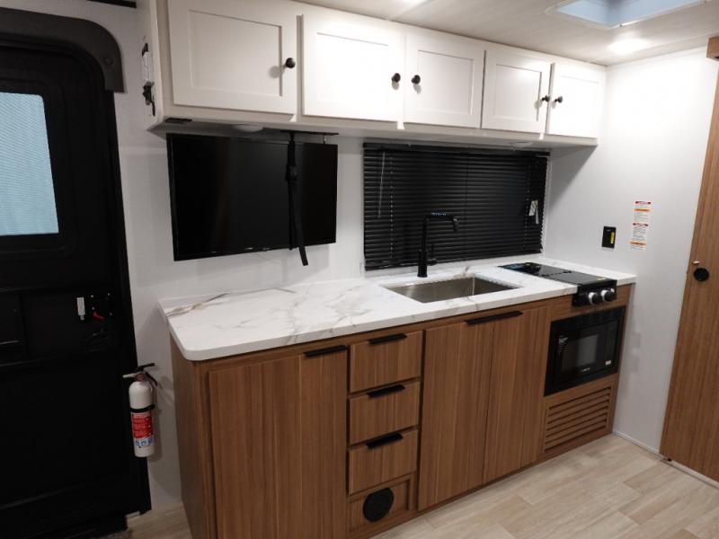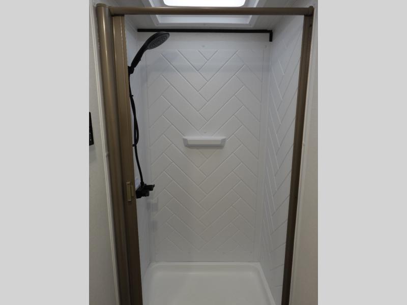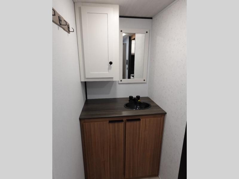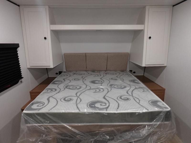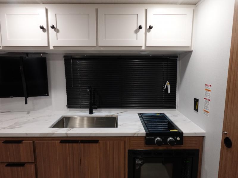 This rear bath, dual axle travel trailer will be perfect for trips to the campground. When you arrive at your site, you can unload the pass-through storage and put out the 14' awning for some shade. The two burner cooktop and microwave oven inside will let you make lunch, and there is a jack knife sofa slide where you can relax on. When it's time to call it a night, you can freshen up in the full rear bath before crashing on the front queen bed!