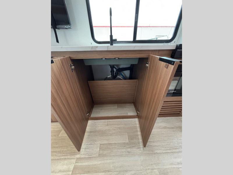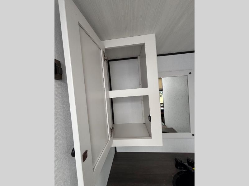 This rear bath, dual axle travel trailer will be perfect for trips to the campground. When you arrive at your site, you can unload the pass-through storage and put out the 14' awning for some shade. The two burner cooktop and microwave oven inside will let you make lunch, and there is a jack knife sofa slide where you can relax on. When it's time to call it a night, you can freshen up in the full rear bath before crashing on the front queen bed!