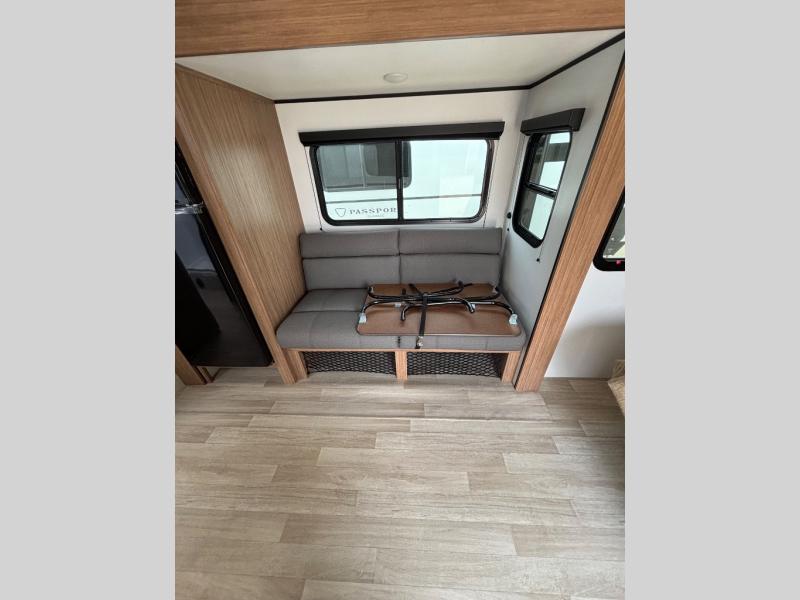 Comfort is found all throughout each one of these Keystone RV Passport Classic travel trailers! They are built with a one-piece polypropylene underbelly to protect your unit's vitals, and a seamless, laminated and gel-coated filon exterior that is sure to turn heads at the campsite. A fully walkable roof makes it easy to access when needed, and the leaf spring straight axles help provide smooth towing. The residential durable Beauflor vinyl flooring throughout and the seamless kitchen countertops will be easy to clean, and you can stay cool on a hot summer day with the A/C unit. Come find the Passport Classic that fits your needs best!