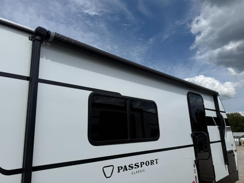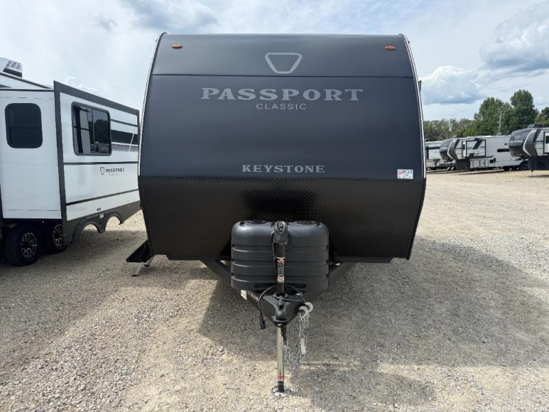 Comfort is found all throughout each one of these Keystone RV Passport Classic travel trailers! They are built with a one-piece polypropylene underbelly to protect your unit's vitals, and a seamless, laminated and gel-coated filon exterior that is sure to turn heads at the campsite. A fully walkable roof makes it easy to access when needed, and the leaf spring straight axles help provide smooth towing. The residential durable Beauflor vinyl flooring throughout and the seamless kitchen countertops will be easy to clean, and you can stay cool on a hot summer day with the A/C unit. Come find the Passport Classic that fits your needs best!
