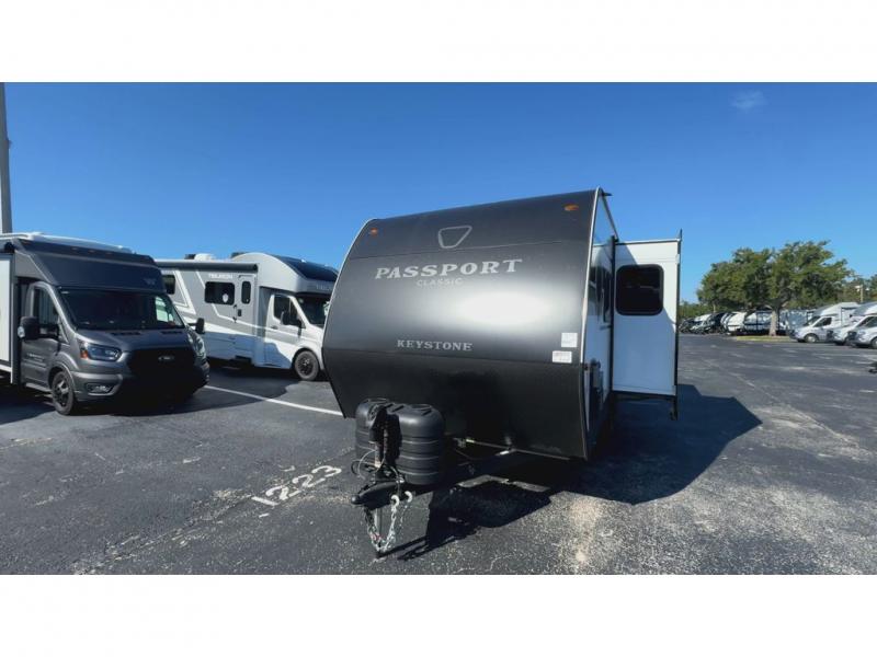 Comfort is found all throughout each one of these Keystone RV Passport Classic travel trailers! They are built with a one-piece polypropylene underbelly to protect your unit's vitals, and a seamless, laminated and gel-coated filon exterior that is sure to turn heads at the campsite. A fully walkable roof makes it easy to access when needed, and the leaf spring straight axles help provide smooth towing. The residential durable Beauflor vinyl flooring throughout and the seamless kitchen countertops will be easy to clean, and you can stay cool on a hot summer day with the A/C unit. Come find the Passport Classic that fits your needs best!