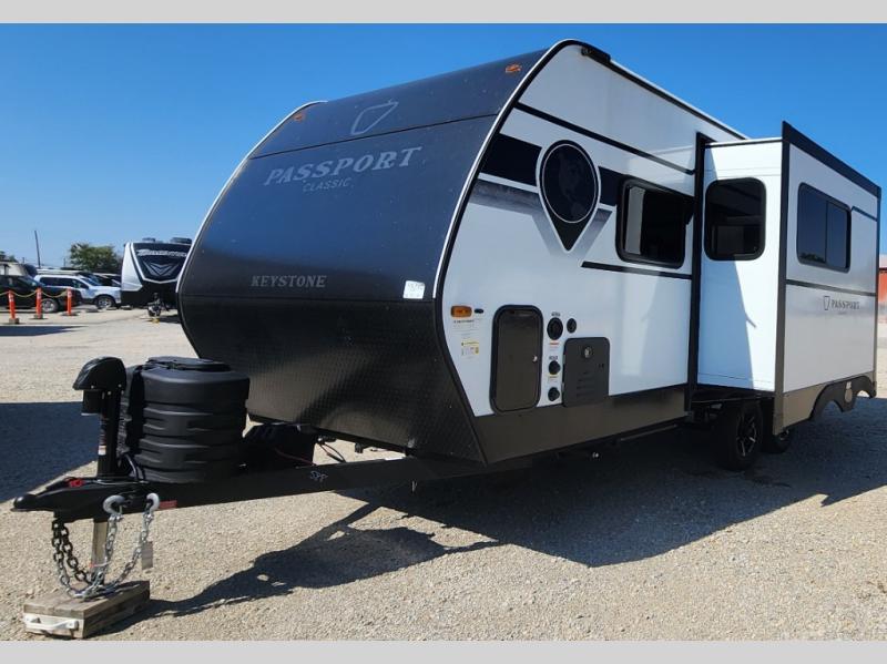 Comfort is found all throughout each one of these Keystone RV Passport Classic travel trailers! They are built with a heated and enclosed underbelly, tinted safety glass windows, and a fully walkable roof for added durability. There are also leaf spring axles, a new Keyed A-Like locking system, and a new glass entry door with a built-in shade for privacy. Inside, you'll find deluxe night shades, residential-style bathroom countertops, LED lighting throughout, and new custom metal window valances to name a few comforts.