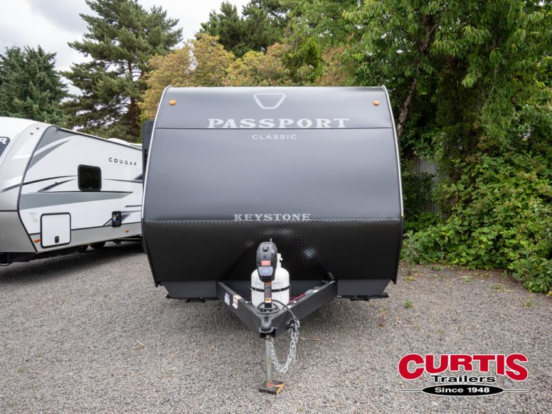 Comfort is found all throughout each one of these Keystone RV Passport Classic travel trailers! They are built with a one-piece polypropylene underbelly to protect your unit's vitals, and a seamless, laminated and gel-coated filon exterior that is sure to turn heads at the campsite. A fully walkable roof makes it easy to access when needed, and the leaf spring straight axles help provide smooth towing. The residential durable Beauflor vinyl flooring throughout and the seamless kitchen countertops will be easy to clean, and you can stay cool on a hot summer day with the A/C unit. Come find the Passport Classic that fits your needs best!