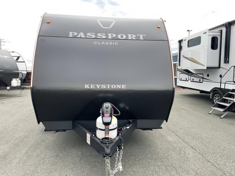 Comfort is found all throughout each one of these Keystone RV Passport Classic travel trailers! They are built with a one-piece polypropylene underbelly to protect your unit's vitals, and a seamless, laminated and gel-coated filon exterior that is sure to turn heads at the campsite. A fully walkable roof makes it easy to access when needed, and the leaf spring straight axles help provide smooth towing. The residential durable Beauflor vinyl flooring throughout and the seamless kitchen countertops will be easy to clean, and you can stay cool on a hot summer day with the A/C unit. Come find the Passport Classic that fits your needs best!