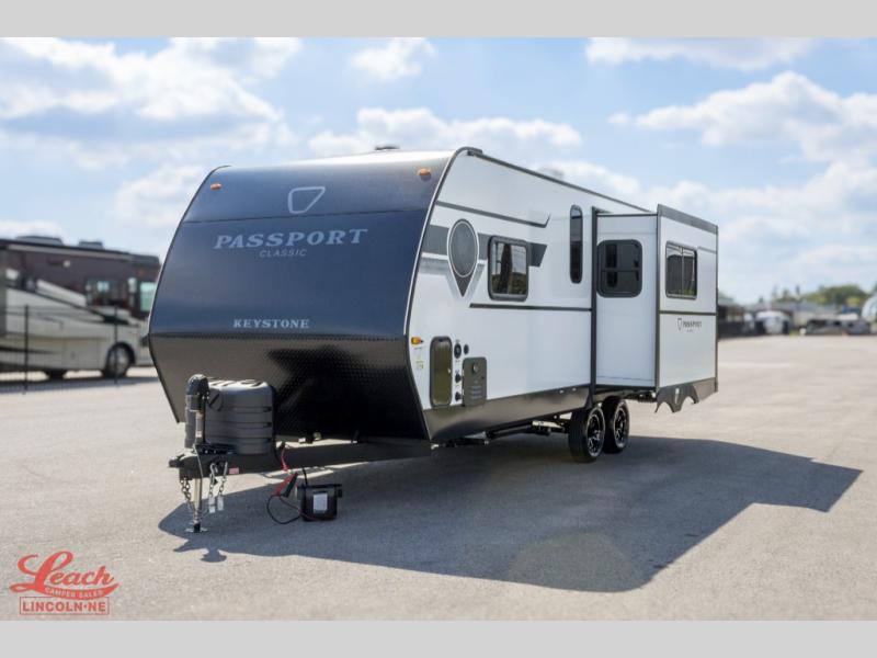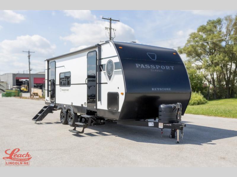 Comfort is found all throughout each one of these Keystone RV Passport Classic travel trailers! They are built with a one-piece polypropylene underbelly to protect your unit's vitals, and a seamless, laminated and gel-coated filon exterior that is sure to turn heads at the campsite. A fully walkable roof makes it easy to access when needed, and the leaf spring straight axles help provide smooth towing. The residential durable Beauflor vinyl flooring throughout and the seamless kitchen countertops will be easy to clean, and you can stay cool on a hot summer day with the A/C unit. Come find the Passport Classic that fits your needs best!