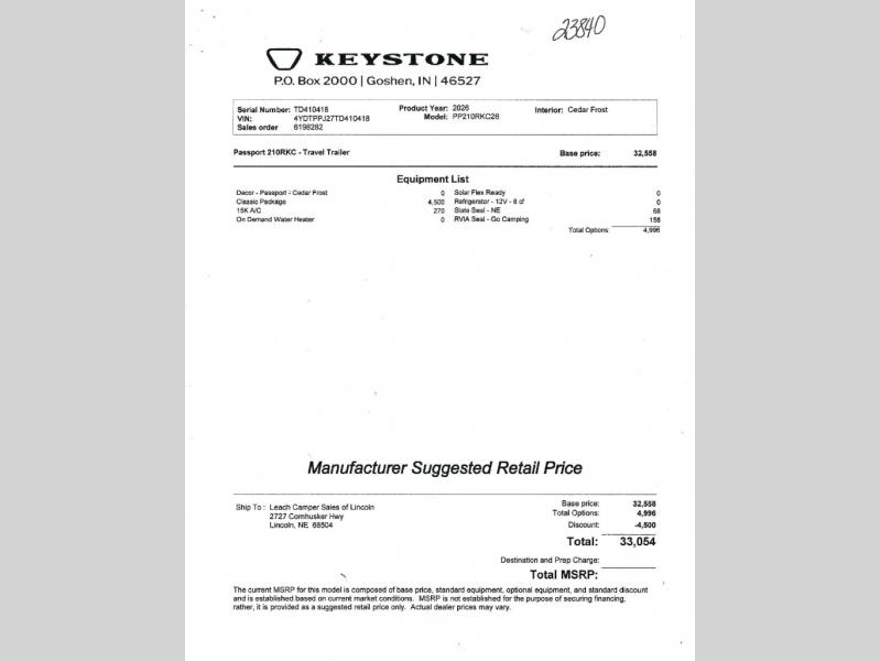 New 2026 Keystone RV Passport Classic 210RKC Travel Trailer