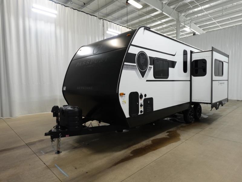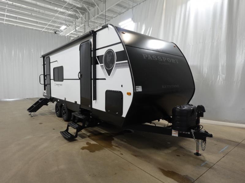 Comfort is found all throughout each one of these Keystone RV Passport Classic travel trailers! They are built with a one-piece polypropylene underbelly to protect your unit's vitals, and a seamless, laminated and gel-coated filon exterior that is sure to turn heads at the campsite. A fully walkable roof makes it easy to access when needed, and the leaf spring straight axles help provide smooth towing. The residential durable Beauflor vinyl flooring throughout and the seamless kitchen countertops will be easy to clean, and you can stay cool on a hot summer day with the A/C unit. Come find the Passport Classic that fits your needs best!