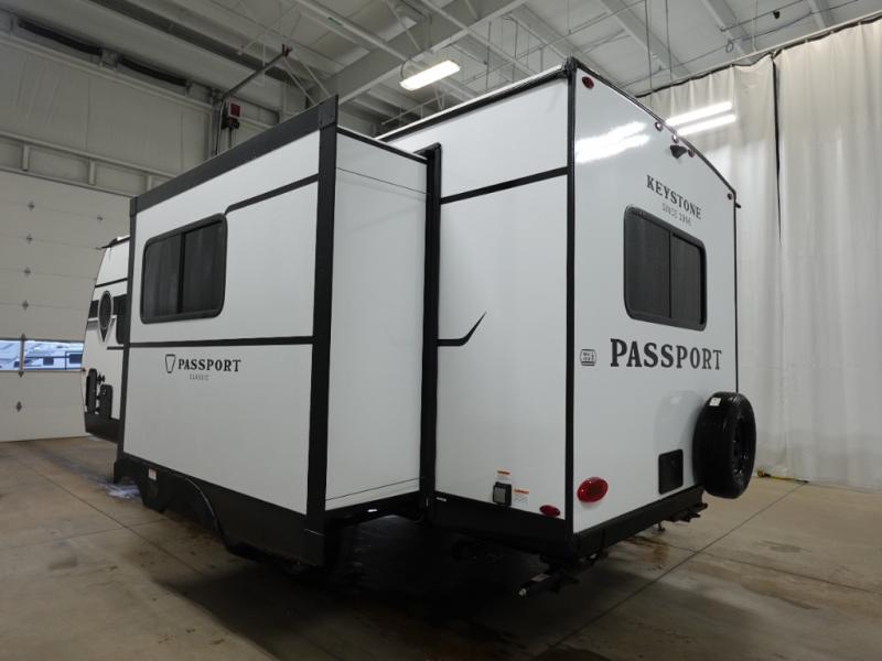 Comfort is found all throughout each one of these Keystone RV Passport Classic travel trailers! They are built with a one-piece polypropylene underbelly to protect your unit's vitals, and a seamless, laminated and gel-coated filon exterior that is sure to turn heads at the campsite. A fully walkable roof makes it easy to access when needed, and the leaf spring straight axles help provide smooth towing. The residential durable Beauflor vinyl flooring throughout and the seamless kitchen countertops will be easy to clean, and you can stay cool on a hot summer day with the A/C unit. Come find the Passport Classic that fits your needs best!