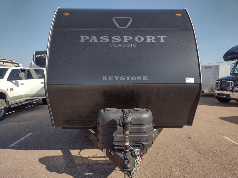 Comfort is found all throughout each one of these Keystone RV Passport Classic travel trailers! They are built with a one-piece polypropylene underbelly to protect your unit's vitals, and a seamless, laminated and gel-coated filon exterior that is sure to turn heads at the campsite. A fully walkable roof makes it easy to access when needed, and the leaf spring straight axles help provide smooth towing. The residential durable Beauflor vinyl flooring throughout and the seamless kitchen countertops will be easy to clean, and you can stay cool on a hot summer day with the A/C unit. Come find the Passport Classic that fits your needs best!