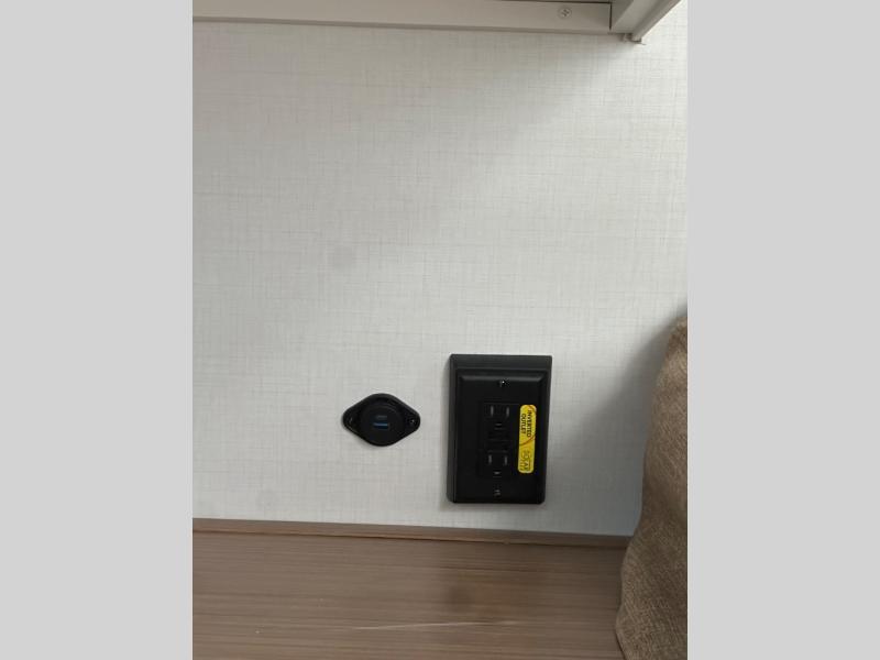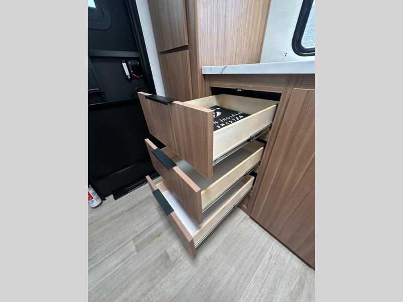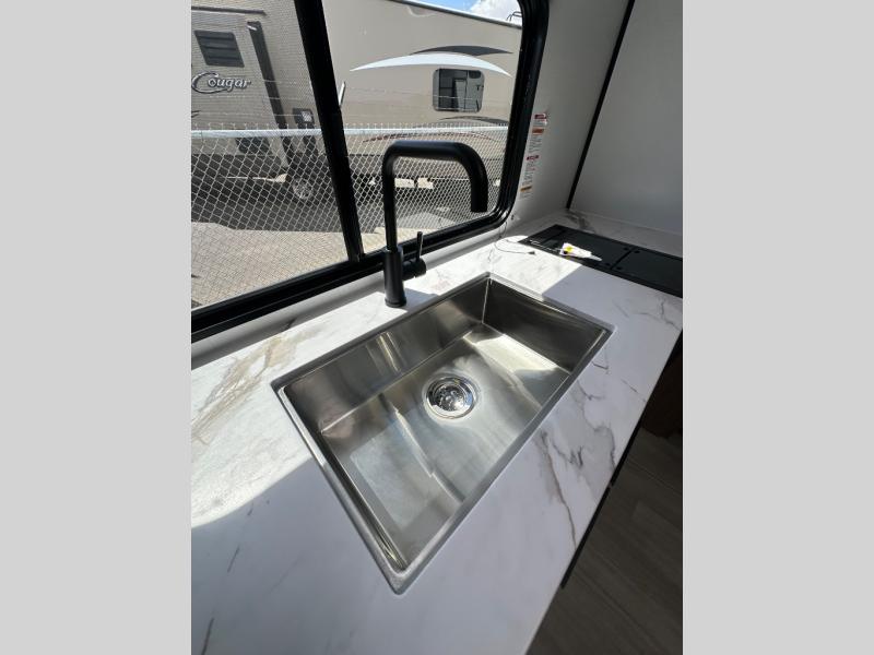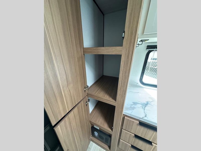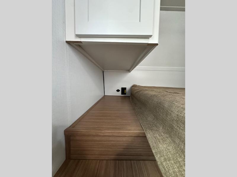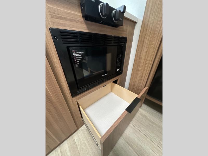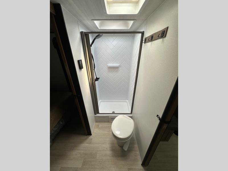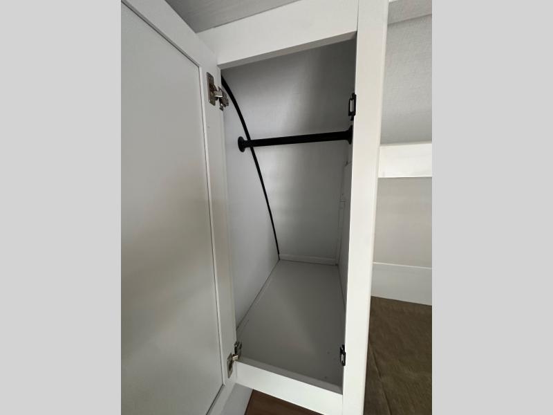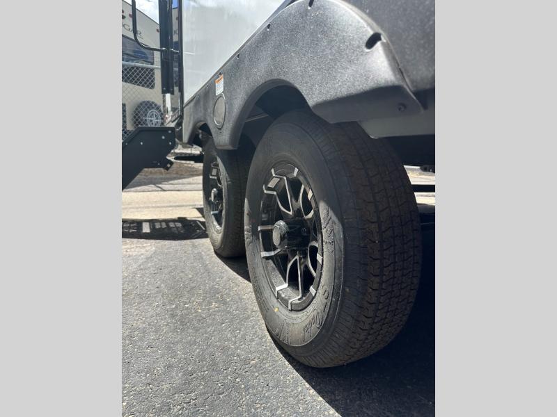 Camping trips in this spacious travel trailer will be trips well spent! With dual entry doors, you can enter in through the front private bedroom or the rear kitchen. Not only will find a walk-around queen bed in the bedroom, but you can also keep your things organized with the dual bedside wardrobes and nightstands. The walk-thru bath leads to the main living area that includes a jack knife sofa slide out and booth dinette. And the chef of your group will love cooking in the rear kitchen with a two burner cooktop, microwave oven, plus a pantry and 12V refrigerator for food storage!