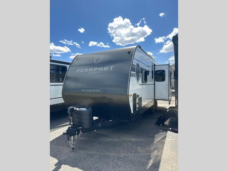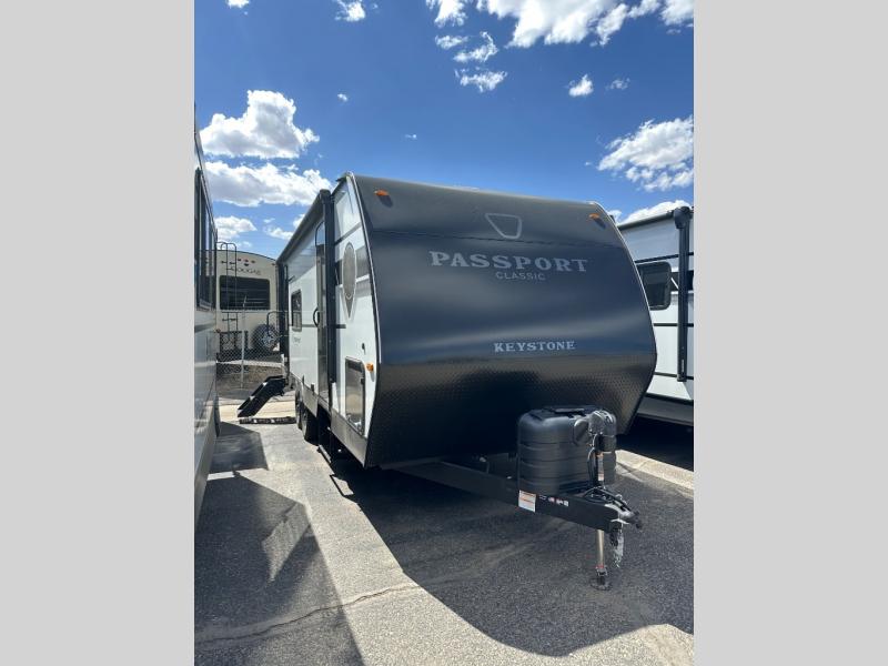 Comfort is found all throughout each one of these Keystone RV Passport Classic travel trailers! They are built with a one-piece polypropylene underbelly to protect your unit's vitals, and a seamless, laminated and gel-coated filon exterior that is sure to turn heads at the campsite. A fully walkable roof makes it easy to access when needed, and the leaf spring straight axles help provide smooth towing. The residential durable Beauflor vinyl flooring throughout and the seamless kitchen countertops will be easy to clean, and you can stay cool on a hot summer day with the A/C unit. Come find the Passport Classic that fits your needs best!