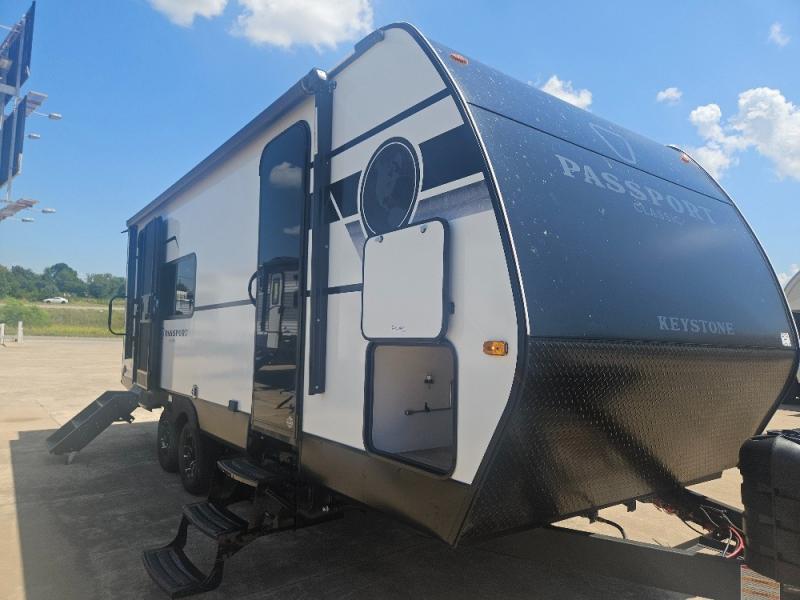 Comfort is found all throughout each one of these Keystone RV Passport Classic travel trailers! They are built with a one-piece polypropylene underbelly to protect your unit's vitals, and a seamless, laminated and gel-coated filon exterior that is sure to turn heads at the campsite. A fully walkable roof makes it easy to access when needed, and the leaf spring straight axles help provide smooth towing. The residential durable Beauflor vinyl flooring throughout and the seamless kitchen countertops will be easy to clean, and you can stay cool on a hot summer day with the A/C unit. Come find the Passport Classic that fits your needs best!