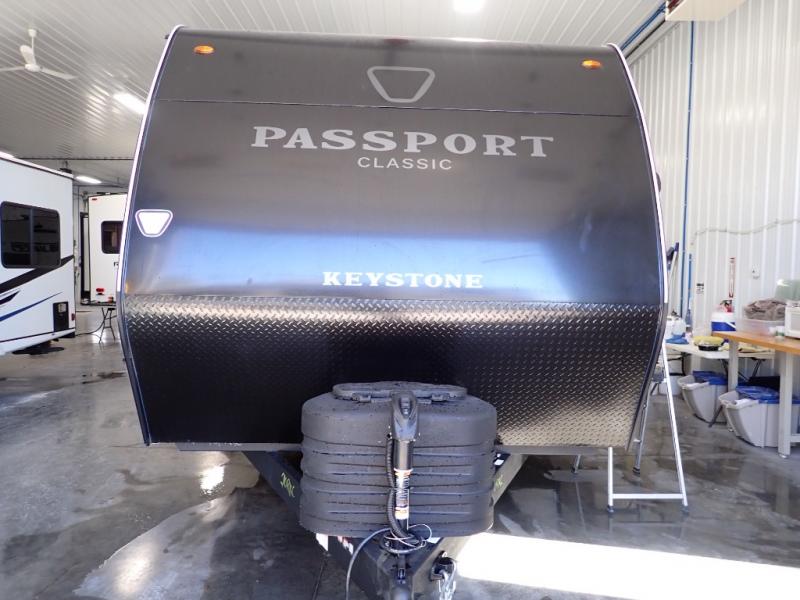 Comfort is found all throughout each one of these Keystone RV Passport Classic travel trailers! They are built with a one-piece polypropylene underbelly to protect your unit's vitals, and a seamless, laminated and gel-coated filon exterior that is sure to turn heads at the campsite. A fully walkable roof makes it easy to access when needed, and the leaf spring straight axles help provide smooth towing. The residential durable Beauflor vinyl flooring throughout and the seamless kitchen countertops will be easy to clean, and you can stay cool on a hot summer day with the A/C unit. Come find the Passport Classic that fits your needs best!