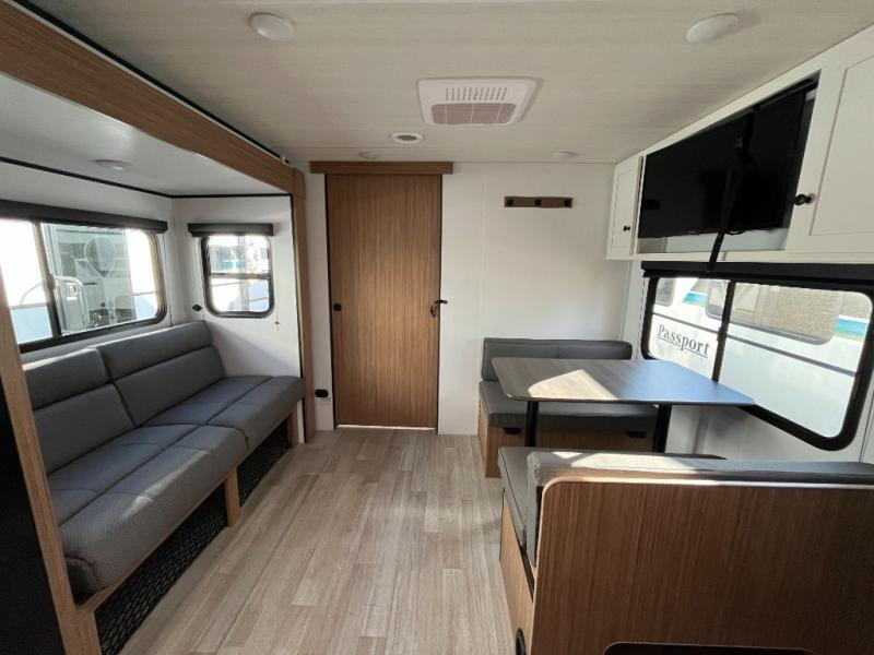Comfort is found all throughout each one of these Keystone RV Passport Classic travel trailers! They are built with a one-piece polypropylene underbelly to protect your unit's vitals, and a seamless, laminated and gel-coated filon exterior that is sure to turn heads at the campsite. A fully walkable roof makes it easy to access when needed, and the leaf spring straight axles help provide smooth towing. The residential durable Beauflor vinyl flooring throughout and the seamless kitchen countertops will be easy to clean, and you can stay cool on a hot summer day with the A/C unit. Come find the Passport Classic that fits your needs best!