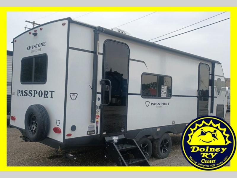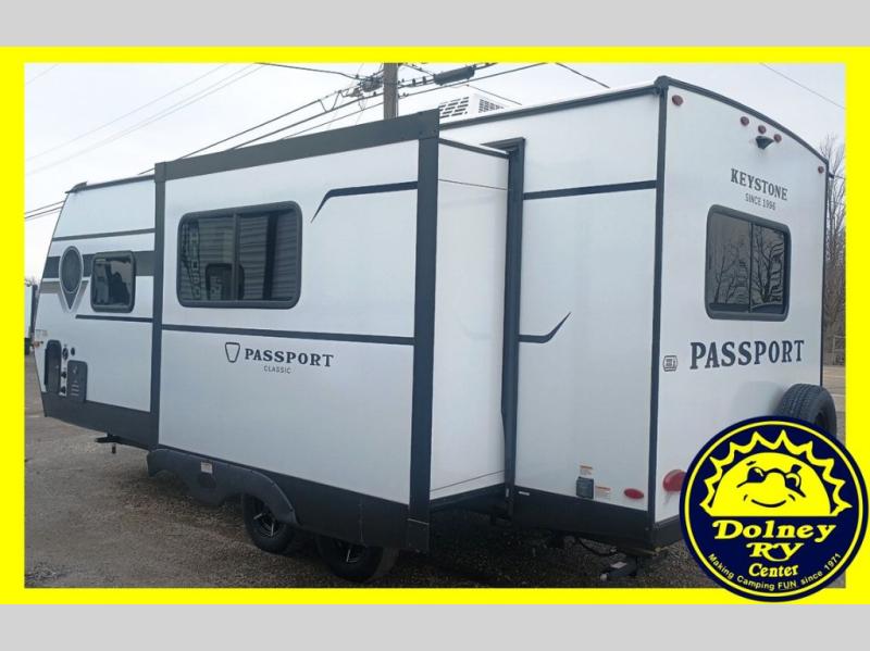 Comfort is found all throughout each one of these Keystone RV Passport Classic travel trailers! They are built with a one-piece polypropylene underbelly to protect your unit's vitals, and a seamless, laminated and gel-coated filon exterior that is sure to turn heads at the campsite. A fully walkable roof makes it easy to access when needed, and the leaf spring straight axles help provide smooth towing. The residential durable Beauflor vinyl flooring throughout and the seamless kitchen countertops will be easy to clean, and you can stay cool on a hot summer day with the A/C unit. Come find the Passport Classic that fits your needs best!