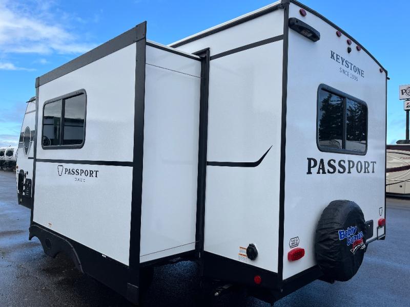 Comfort is found all throughout each one of these Keystone RV Passport Classic travel trailers! They are built with a one-piece polypropylene underbelly to protect your unit's vitals, and a seamless, laminated and gel-coated filon exterior that is sure to turn heads at the campsite. A fully walkable roof makes it easy to access when needed, and the leaf spring straight axles help provide smooth towing. The residential durable Beauflor vinyl flooring throughout and the seamless kitchen countertops will be easy to clean, and you can stay cool on a hot summer day with the A/C unit. Come find the Passport Classic that fits your needs best!