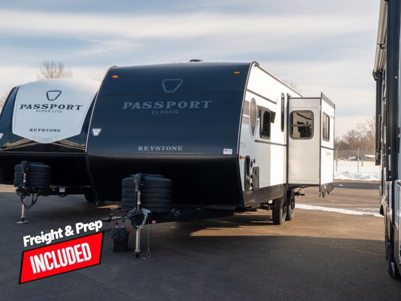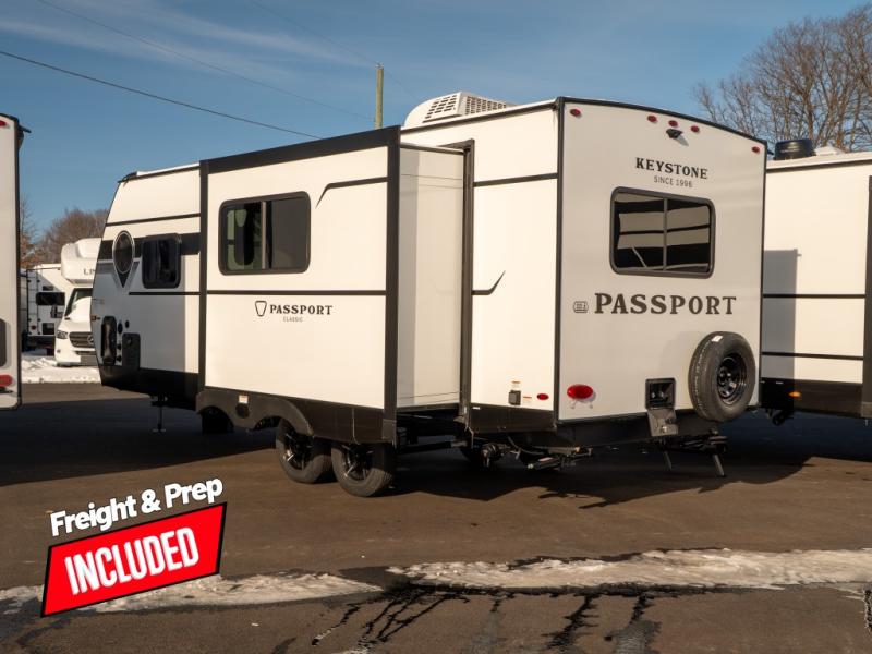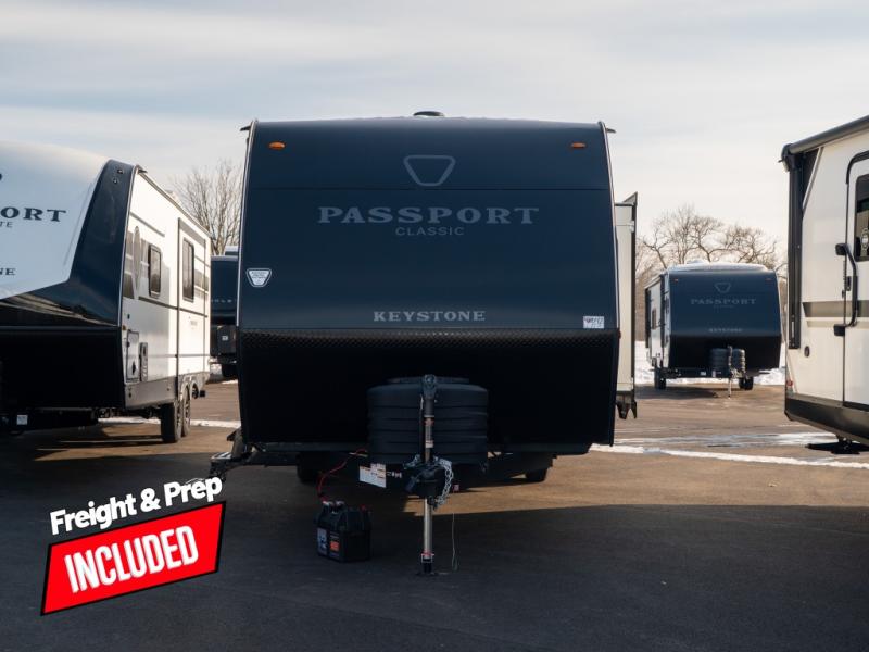 Comfort is found all throughout each one of these Keystone RV Passport Classic travel trailers! They are built with a heated and enclosed underbelly, tinted safety glass windows, and a fully walkable roof for added durability. There are also leaf spring axles, a new Keyed A-Like locking system, and a new glass entry door with a built-in shade for privacy. Inside, you'll find deluxe night shades, residential-style bathroom countertops, LED lighting throughout, and new custom metal window valances to name a few comforts.