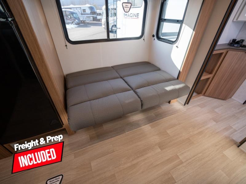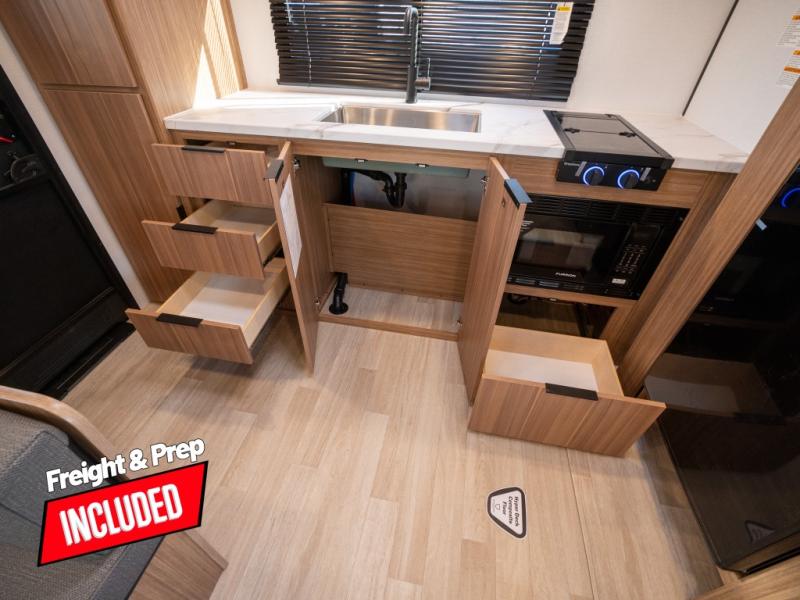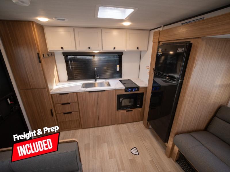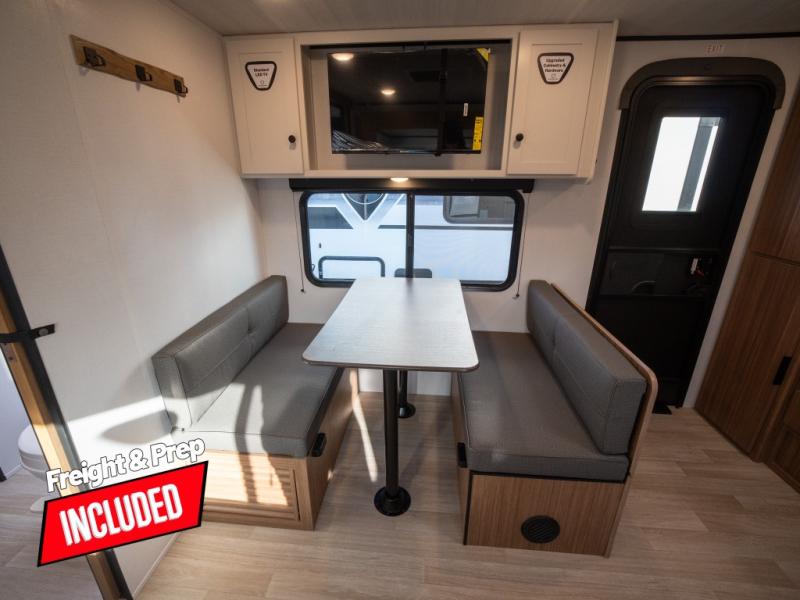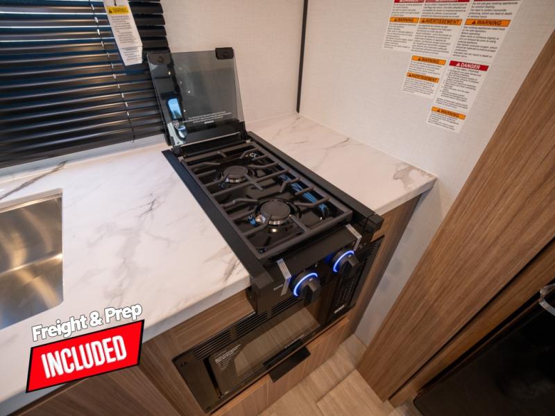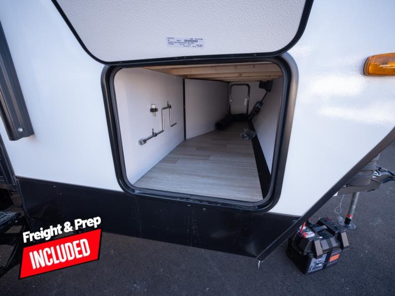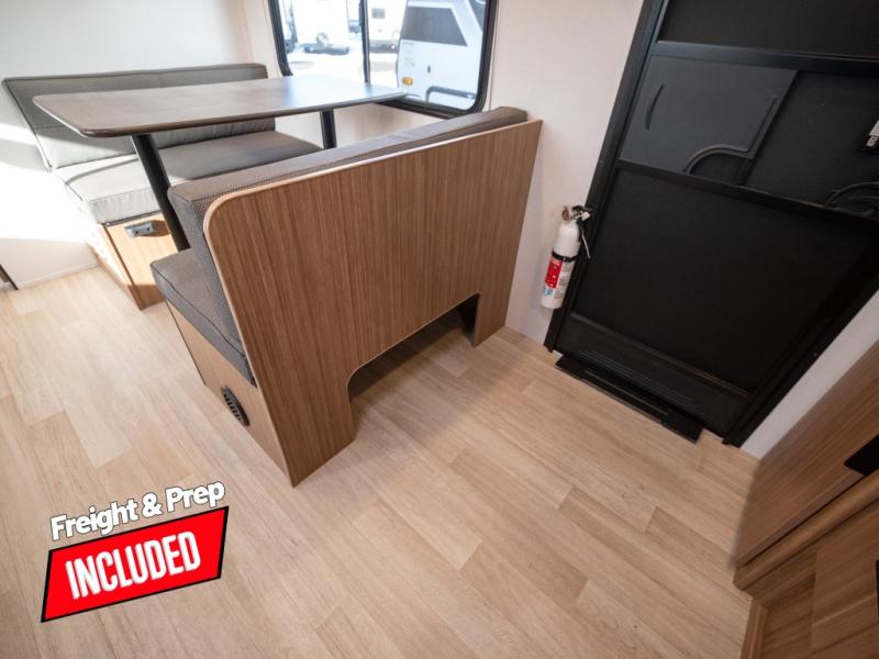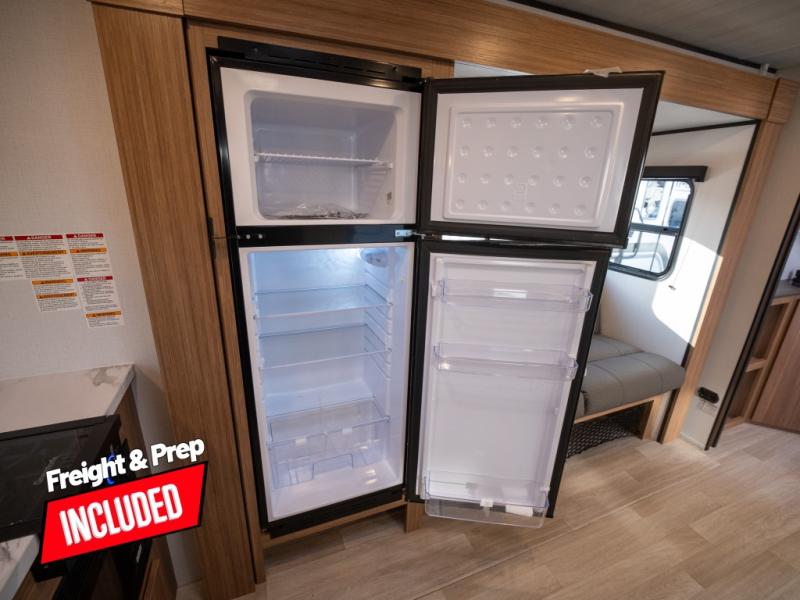 Camping trips in this spacious travel trailer will be trips well spent! With dual entry doors, you can enter in through the front private bedroom or the rear kitchen. Not only will find a walk-around queen bed in the bedroom, but you can also keep your things organized with the dual bedside wardrobes and nightstands. The walk-thru bath leads to the main living area that includes a jack knife sofa slide out and booth dinette. And the chef of your group will love cooking in the rear kitchen with a two-burner cooktop, microwave oven, plus a pantry and 12V refrigerator for food storage!