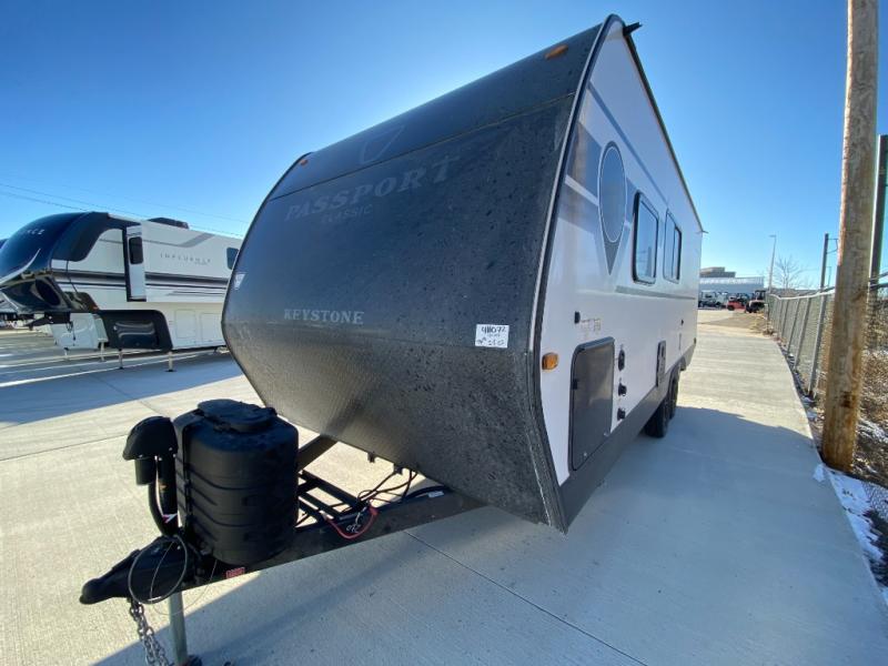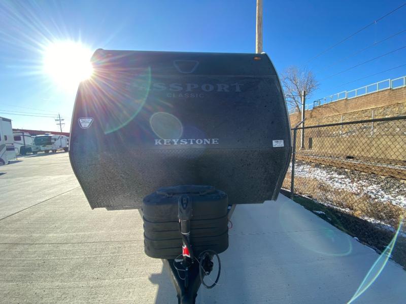 Comfort is found all throughout each one of these Keystone RV Passport Classic travel trailers! They are built with a one-piece polypropylene underbelly to protect your unit's vitals, and a seamless, laminated and gel-coated filon exterior that is sure to turn heads at the campsite. A fully walkable roof makes it easy to access when needed, and the leaf spring straight axles help provide smooth towing. The residential durable Beauflor vinyl flooring throughout and the seamless kitchen countertops will be easy to clean, and you can stay cool on a hot summer day with the A/C unit. Come find the Passport Classic that fits your needs best!