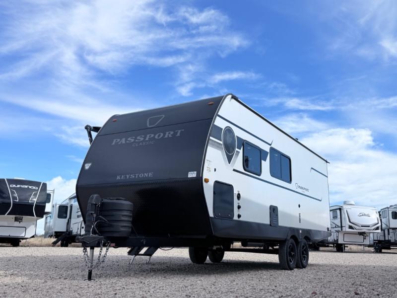 Comfort is found all throughout each one of these Keystone RV Passport Classic travel trailers! They are built with a heated and enclosed underbelly, tinted safety glass windows, and a fully walkable roof for added durability. There are also leaf spring axles, a new Keyed A-Like locking system, and a new glass entry door with a built-in shade for privacy. Inside, you'll find deluxe night shades, residential-style bathroom countertops, LED lighting throughout, and new custom metal window valances to name a few comforts.