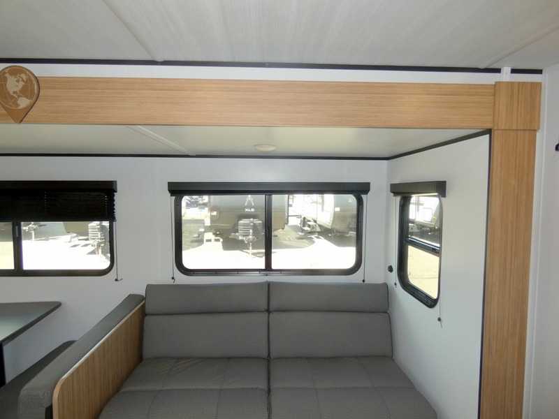 The double-size bunks in this spacious travel trailer make it family approved and perfect for camping with a larger group. You'll have your own private bedroom up front with a queen bed and dual bedside wardrobes, and there are sliding doors to the bedroom which help save space. The main living area and kitchen is made open thanks to the large slide out which houses the booth dinette and jack knife sofa. The fully equipped kitchen lets the chef of your group whip up their best meals, and the full bath with its own exterior entry door is sure to come in handy!