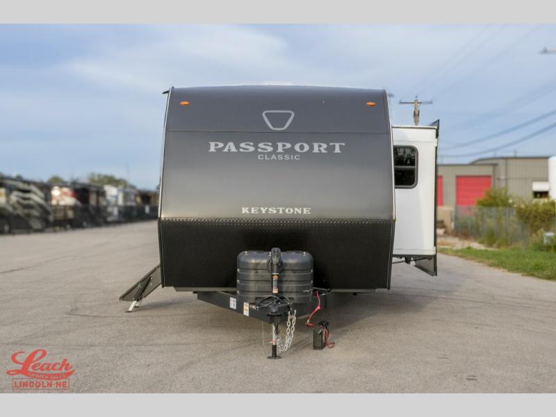 Comfort is found all throughout each one of these Keystone RV Passport Classic travel trailers! They are built with a one-piece polypropylene underbelly to protect your unit's vitals, and a seamless, laminated and gel-coated filon exterior that is sure to turn heads at the campsite. A fully walkable roof makes it easy to access when needed, and the leaf spring straight axles help provide smooth towing. The residential durable Beauflor vinyl flooring throughout and the seamless kitchen countertops will be easy to clean, and you can stay cool on a hot summer day with the A/C unit. Come find the Passport Classic that fits your needs best!