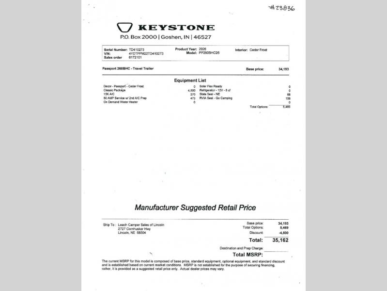 New 2026 Keystone RV Passport Classic 260BHC Travel Trailer