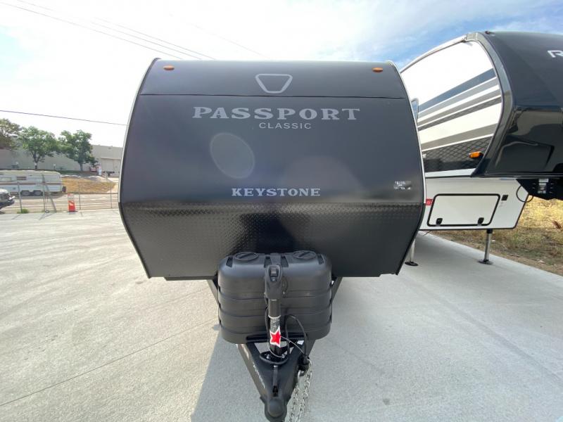 Comfort is found all throughout each one of these Keystone RV Passport Classic travel trailers! They are built with a one-piece polypropylene underbelly to protect your unit's vitals, and a seamless, laminated and gel-coated filon exterior that is sure to turn heads at the campsite. A fully walkable roof makes it easy to access when needed, and the leaf spring straight axles help provide smooth towing. The residential durable Beauflor vinyl flooring throughout and the seamless kitchen countertops will be easy to clean, and you can stay cool on a hot summer day with the A/C unit. Come find the Passport Classic that fits your needs best!