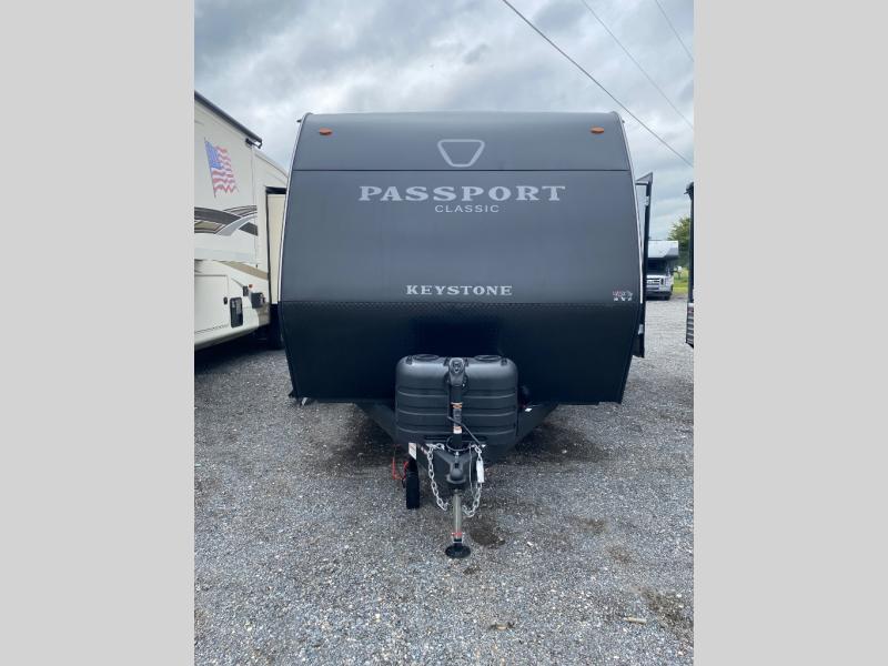 Comfort is found all throughout each one of these Keystone RV Passport Classic travel trailers! They are built with a one-piece polypropylene underbelly to protect your unit's vitals, and a seamless, laminated and gel-coated filon exterior that is sure to turn heads at the campsite. A fully walkable roof makes it easy to access when needed, and the leaf spring straight axles help provide smooth towing. The residential durable Beauflor vinyl flooring throughout and the seamless kitchen countertops will be easy to clean, and you can stay cool on a hot summer day with the A/C unit. Come find the Passport Classic that fits your needs best!