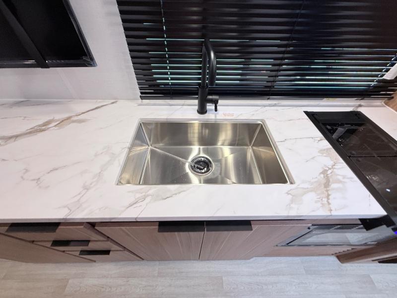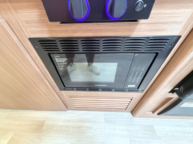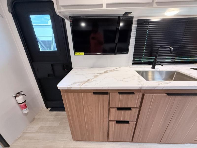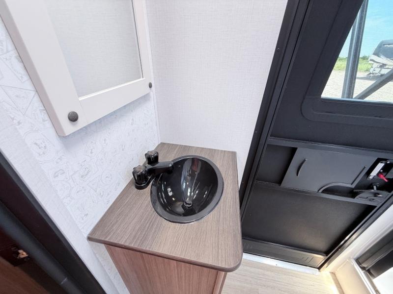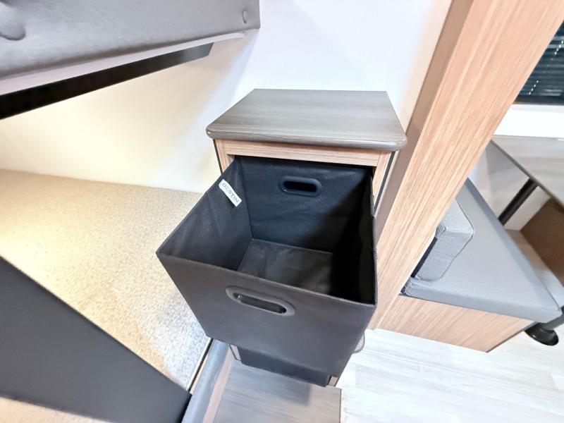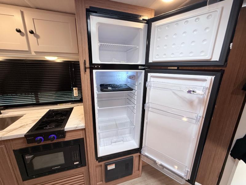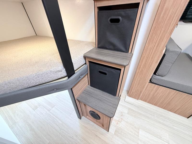 The double-size bunks in this spacious travel trailer make it family approved and perfect for camping with a larger group. You'll have your own private bedroom up front with a queen bed and dual bedside wardrobes, and there are sliding doors to the bedroom which help save space. The main living area and kitchen is made open thanks to the large slide out which houses the booth dinette and jack knife sofa. The fully equipped kitchen lets the chef of your group whip up their best meals, and the full bath with its own exterior entry door is sure to come in handy!