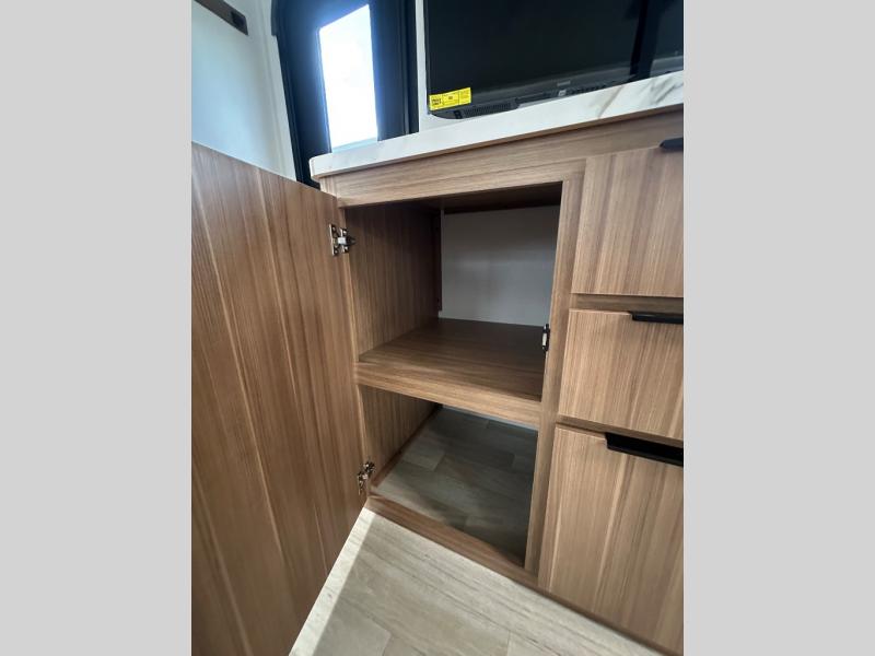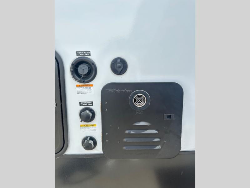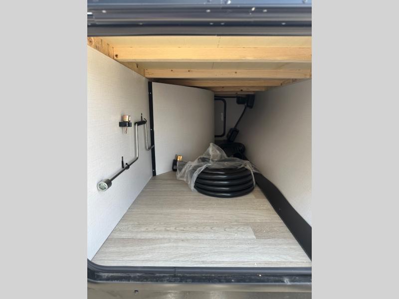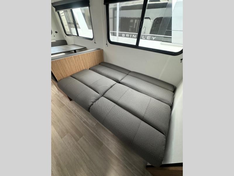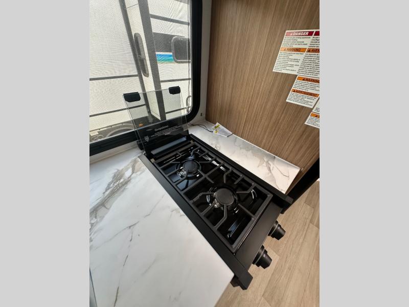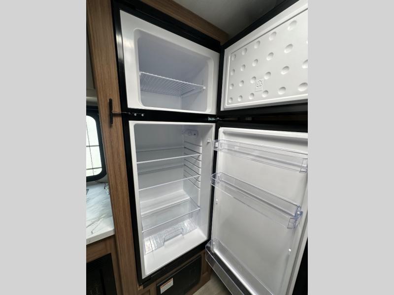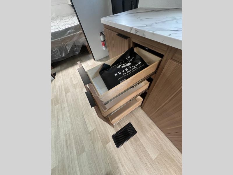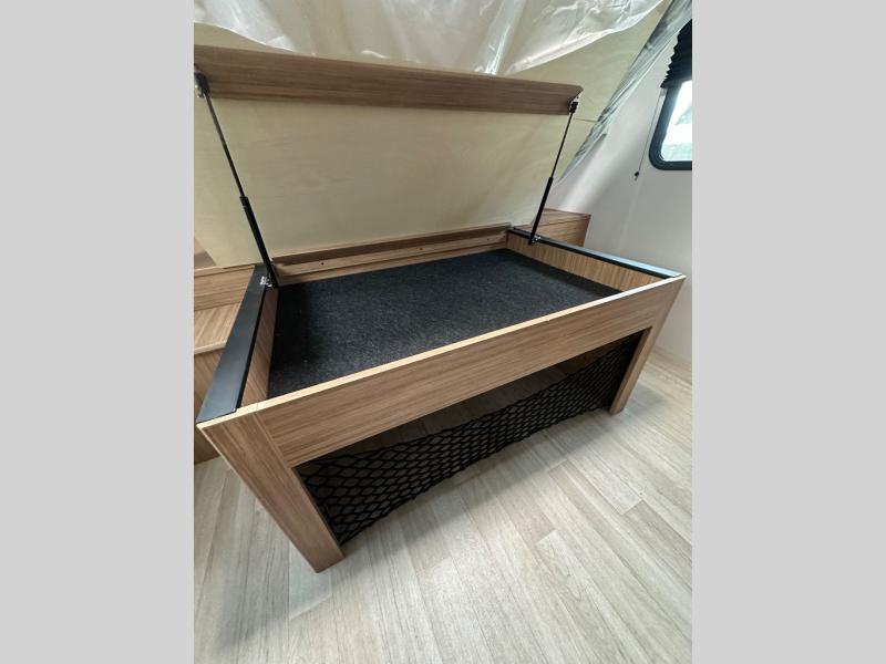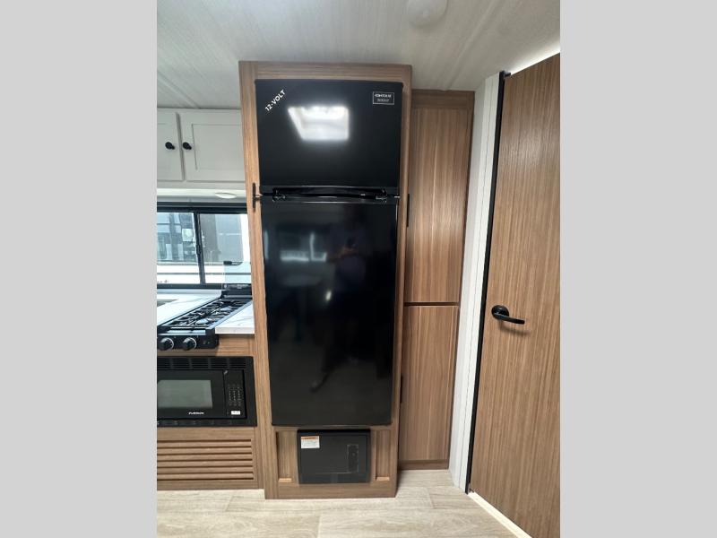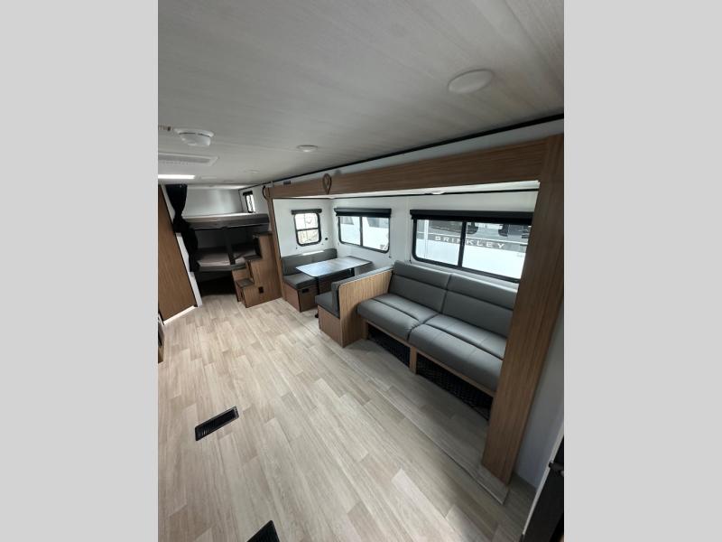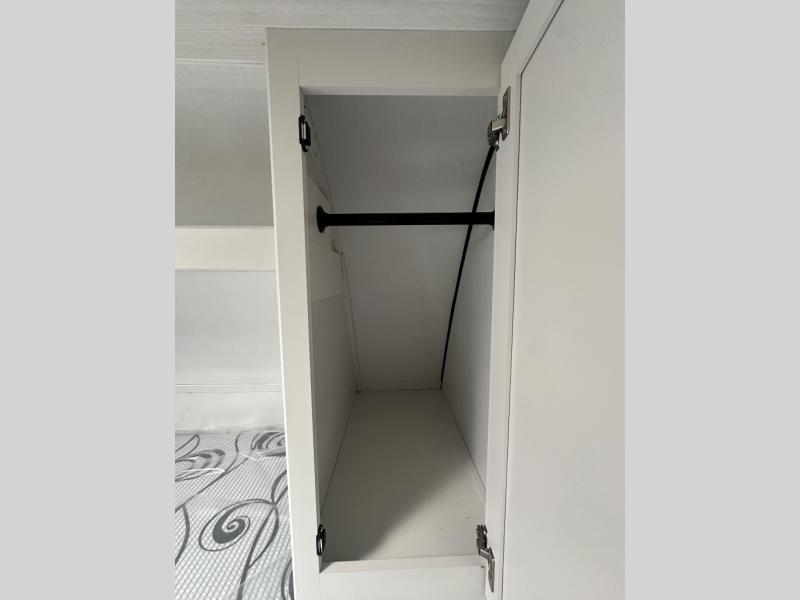 The double-size bunks in this spacious travel trailer make it family approved and perfect for camping with a larger group. You'll have your own private bedroom up front with a queen bed and dual bedside wardrobes, and there are sliding doors to the bedroom which help save space. The main living area and kitchen is made open thanks to the large slide out which houses the booth dinette and jack knife sofa. The fully equipped kitchen lets the chef of your group whip up their best meals, and the full bath with its own exterior entry door is sure to come in handy!