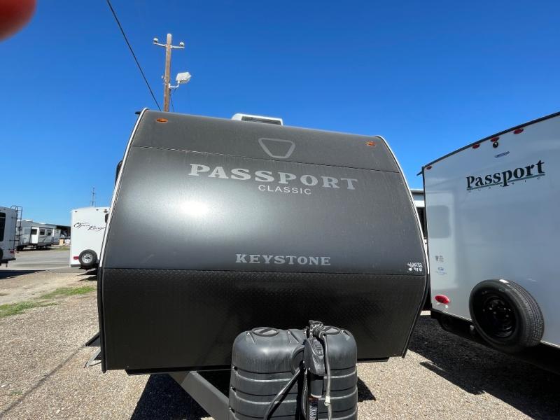 Comfort is found all throughout each one of these Keystone RV Passport Classic travel trailers! They are built with a one-piece polypropylene underbelly to protect your unit's vitals, and a seamless, laminated and gel-coated filon exterior that is sure to turn heads at the campsite. A fully walkable roof makes it easy to access when needed, and the leaf spring straight axles help provide smooth towing. The residential durable Beauflor vinyl flooring throughout and the seamless kitchen countertops will be easy to clean, and you can stay cool on a hot summer day with the A/C unit. Come find the Passport Classic that fits your needs best!