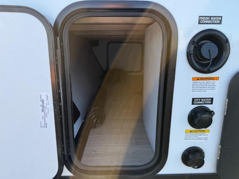 The double-size bunks in this spacious travel trailer make it family approved and perfect for camping with a larger group. You'll have your own private bedroom up front with a queen bed and dual bedside wardrobes, and there are sliding doors to the bedroom which help save space. The main living area and kitchen is made open thanks to the large slide out which houses the booth dinette and jack knife sofa. The fully equipped kitchen lets the chef of your group whip up their best meals, and the full bath with its own exterior entry door is sure to come in handy!