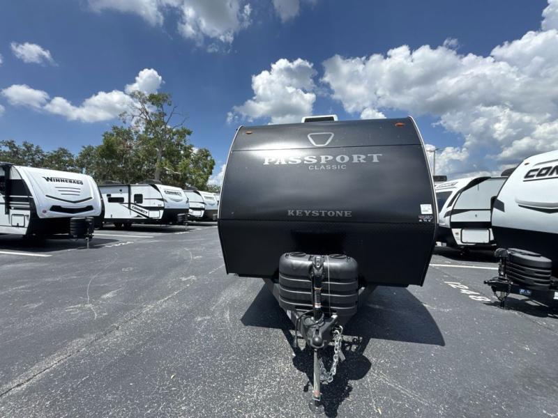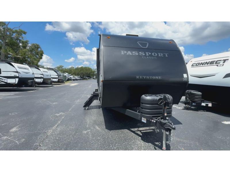 Comfort is found all throughout each one of these Keystone RV Passport Classic travel trailers! They are built with a one-piece polypropylene underbelly to protect your unit's vitals, and a seamless, laminated and gel-coated filon exterior that is sure to turn heads at the campsite. A fully walkable roof makes it easy to access when needed, and the leaf spring straight axles help provide smooth towing. The residential durable Beauflor vinyl flooring throughout and the seamless kitchen countertops will be easy to clean, and you can stay cool on a hot summer day with the A/C unit. Come find the Passport Classic that fits your needs best!