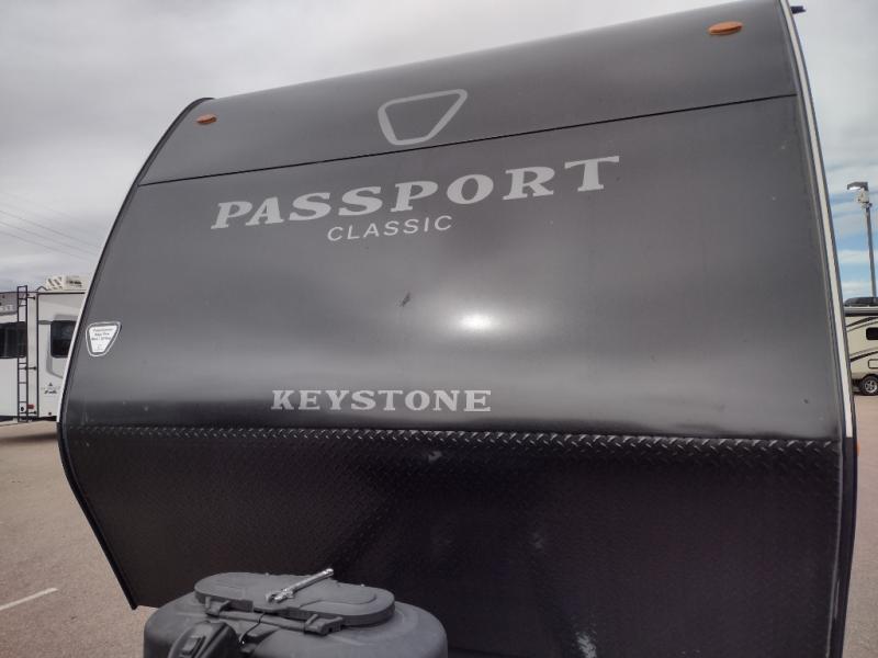 Comfort is found all throughout each one of these Keystone RV Passport Classic travel trailers! They are built with a one-piece polypropylene underbelly to protect your unit's vitals, and a seamless, laminated and gel-coated filon exterior that is sure to turn heads at the campsite. A fully walkable roof makes it easy to access when needed, and the leaf spring straight axles help provide smooth towing. The residential durable Beauflor vinyl flooring throughout and the seamless kitchen countertops will be easy to clean, and you can stay cool on a hot summer day with the A/C unit. Come find the Passport Classic that fits your needs best!