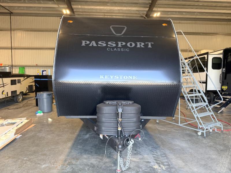 Comfort is found all throughout each one of these Keystone RV Passport Classic travel trailers! They are built with a one-piece polypropylene underbelly to protect your unit's vitals, and a seamless, laminated and gel-coated filon exterior that is sure to turn heads at the campsite. A fully walkable roof makes it easy to access when needed, and the leaf spring straight axles help provide smooth towing. The residential durable Beauflor vinyl flooring throughout and the seamless kitchen countertops will be easy to clean, and you can stay cool on a hot summer day with the A/C unit. Come find the Passport Classic that fits your needs best!