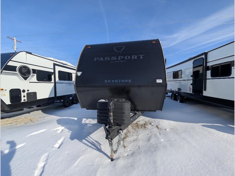 Comfort is found all throughout each one of these Keystone RV Passport Classic travel trailers! They are built with a one-piece polypropylene underbelly to protect your unit's vitals, and a seamless, laminated and gel-coated filon exterior that is sure to turn heads at the campsite. A fully walkable roof makes it easy to access when needed, and the leaf spring straight axles help provide smooth towing. The residential durable Beauflor vinyl flooring throughout and the seamless kitchen countertops will be easy to clean, and you can stay cool on a hot summer day with the A/C unit. Come find the Passport Classic that fits your needs best!