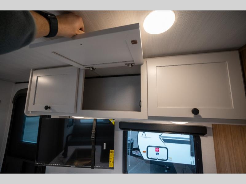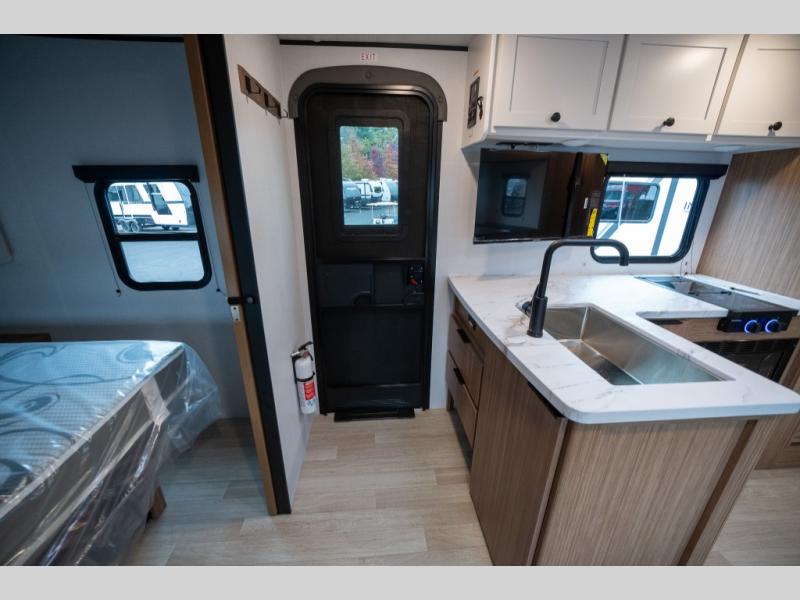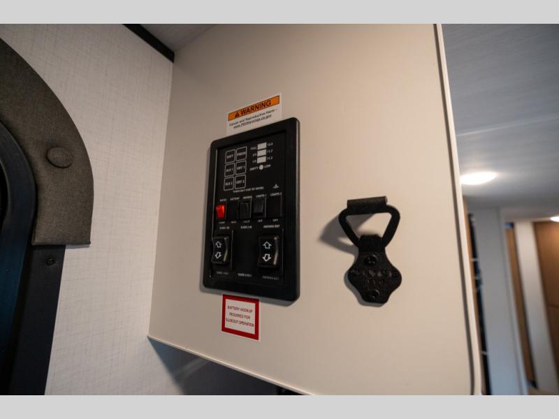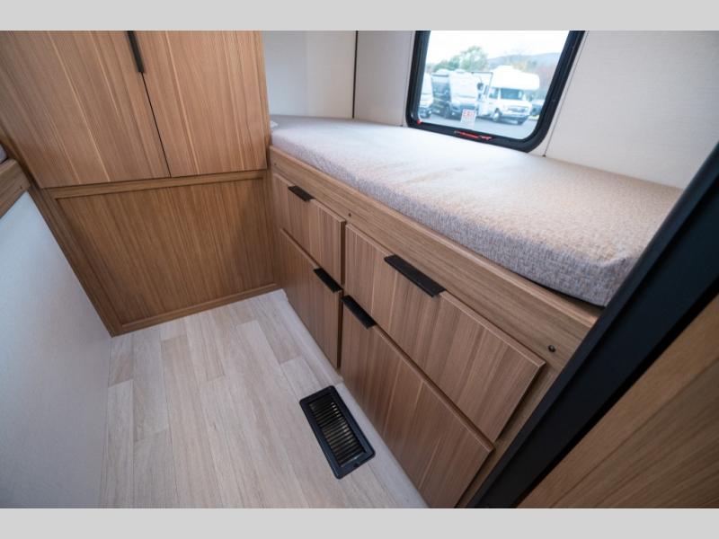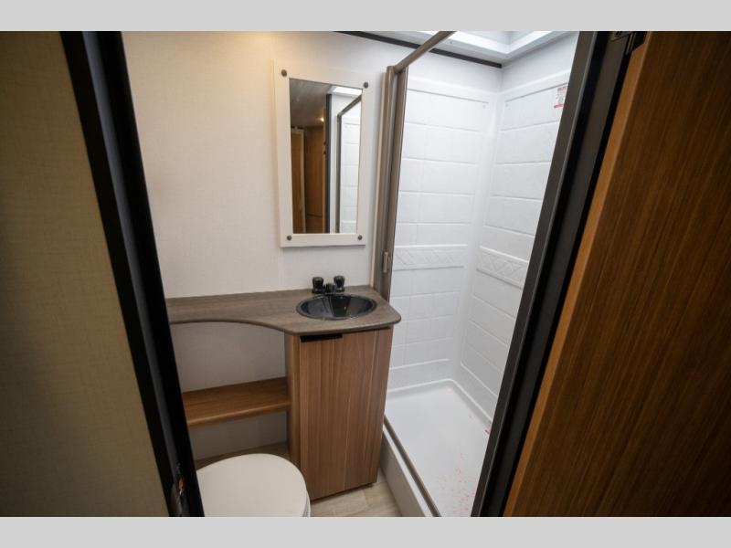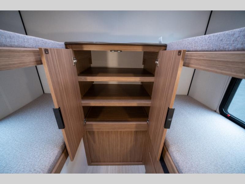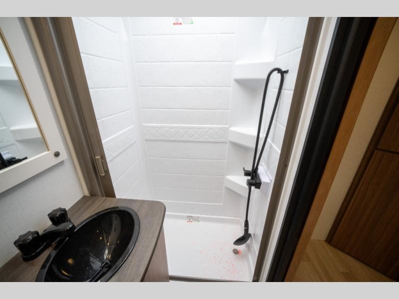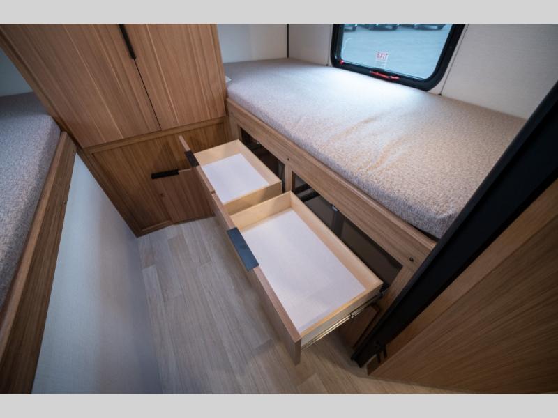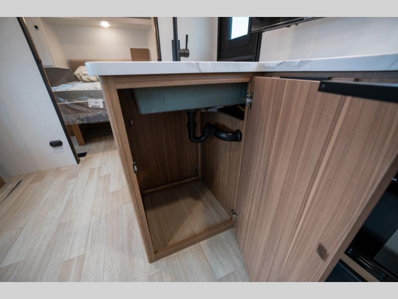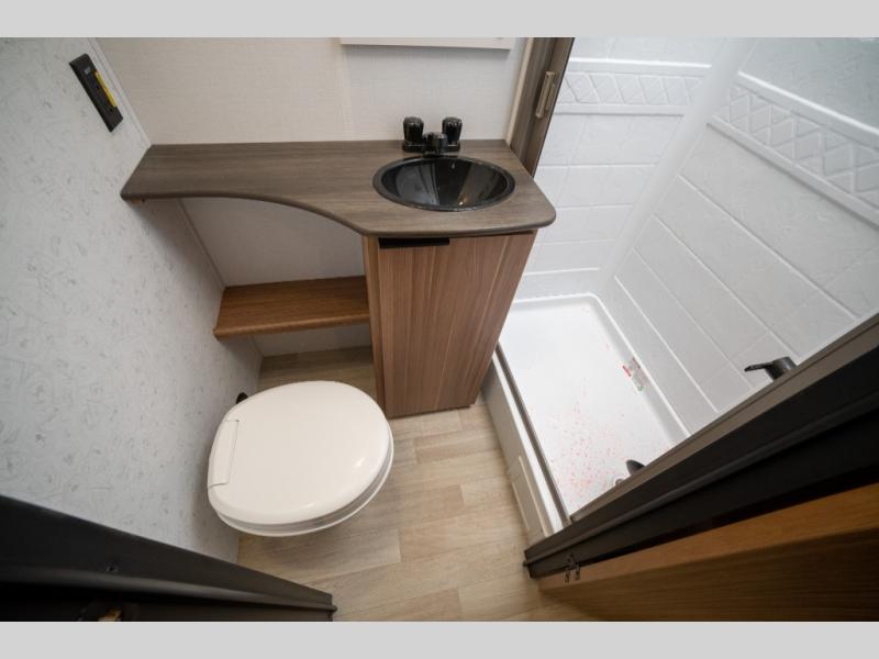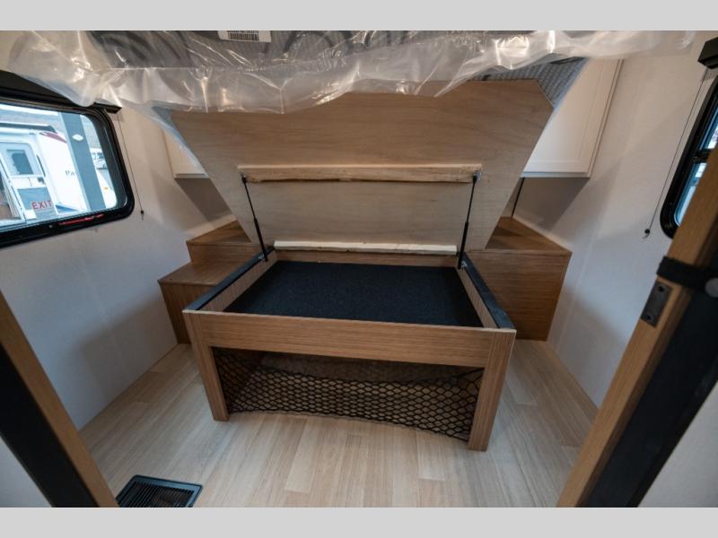 This spacious travel trailer is perfect for a large group or family since it can sleep eight to ten people each night. The bunkhouse will be a favorite spot for the littles ones to enjoy, especially with four bunk beds and a wardrobe with storage. You'll have a queen bed up front in the private bedroom, and if you have any other guests, they can sleep on the jack knife sofa and booth dinette! The two burner range and microwave oven allow you to make meals each day, and the large double door 12V refrigerator will keep leftovers fresh.