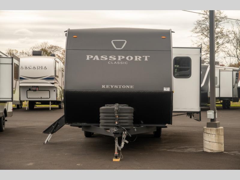 Comfort is found all throughout each one of these Keystone RV Passport Classic travel trailers! They are built with a one-piece polypropylene underbelly to protect your unit's vitals, and a seamless, laminated and gel-coated filon exterior that is sure to turn heads at the campsite. A fully walkable roof makes it easy to access when needed, and the leaf spring straight axles help provide smooth towing. The residential durable Beauflor vinyl flooring throughout and the seamless kitchen countertops will be easy to clean, and you can stay cool on a hot summer day with the A/C unit. Come find the Passport Classic that fits your needs best!